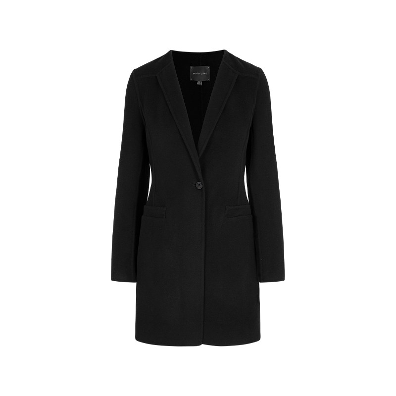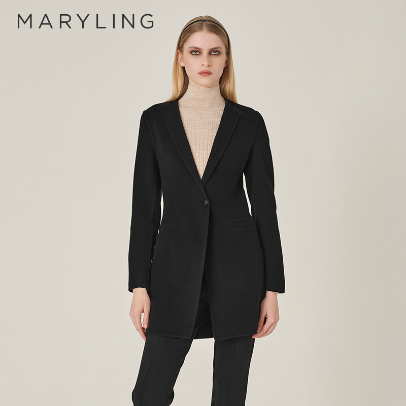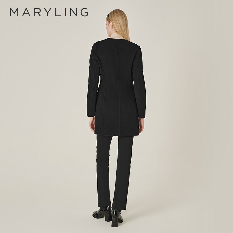 MARYLING玛俪琳秋季新品黑色深V领丝毛大衣外套A1EGW93570