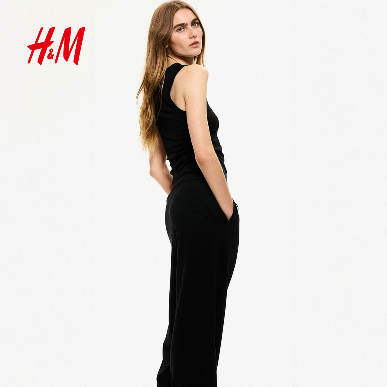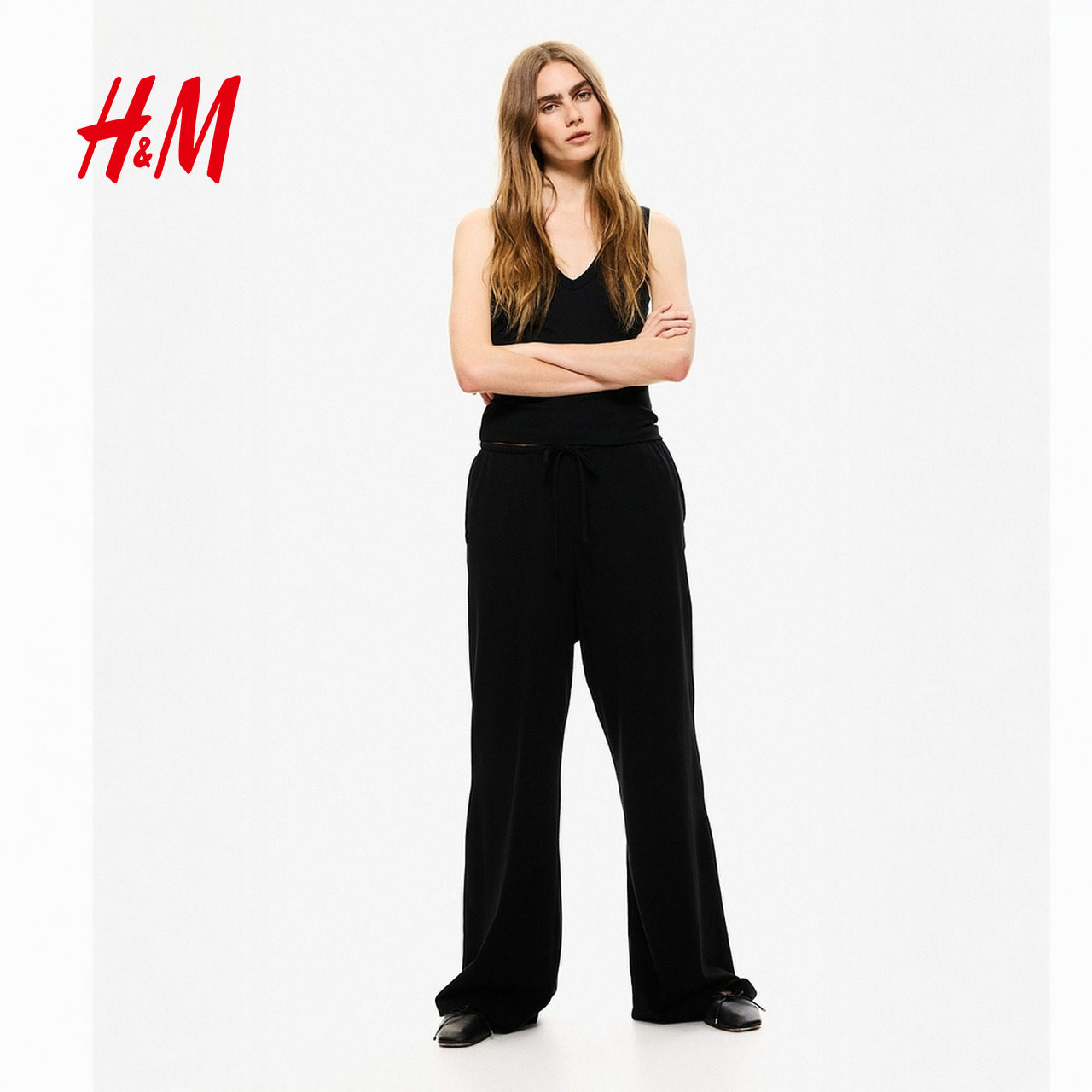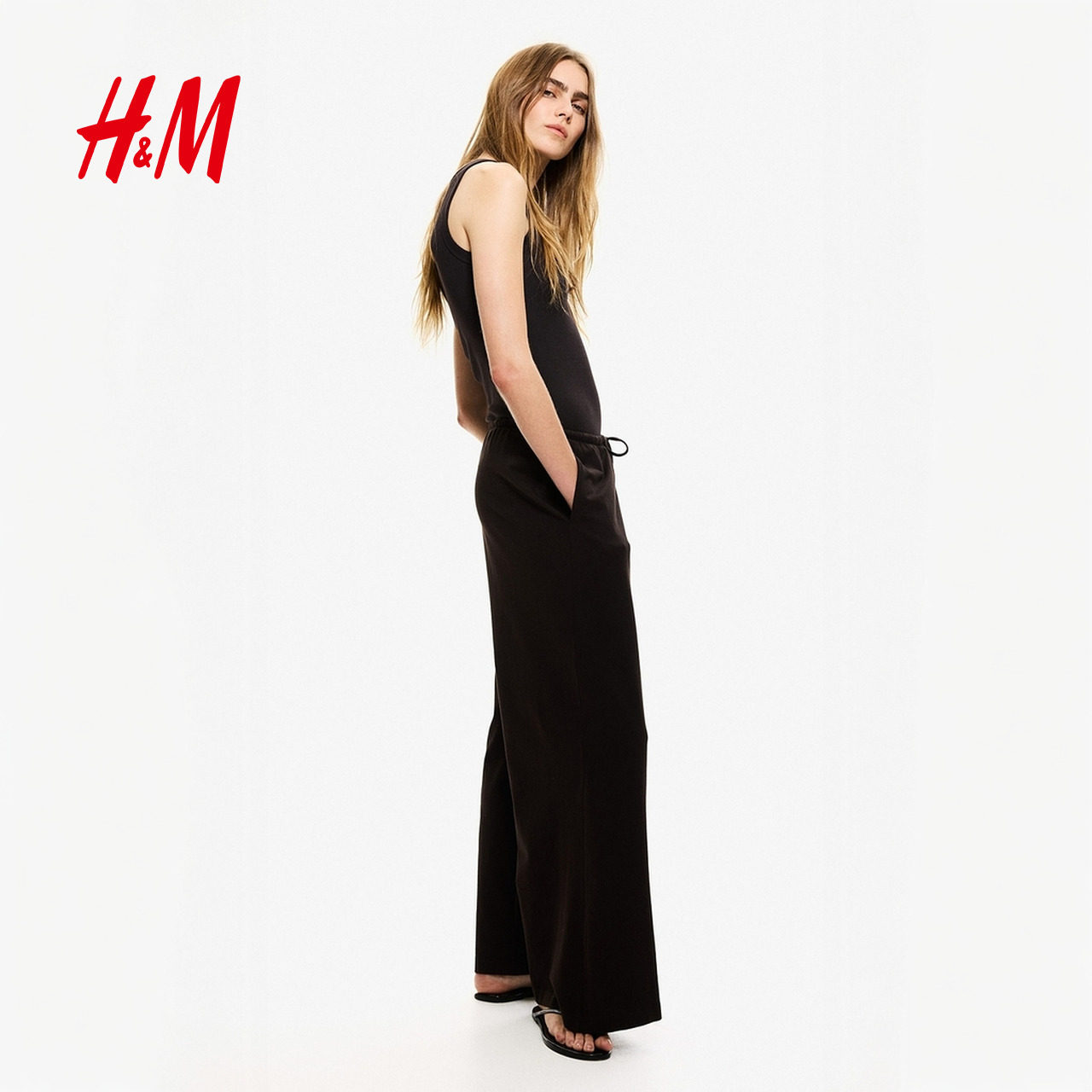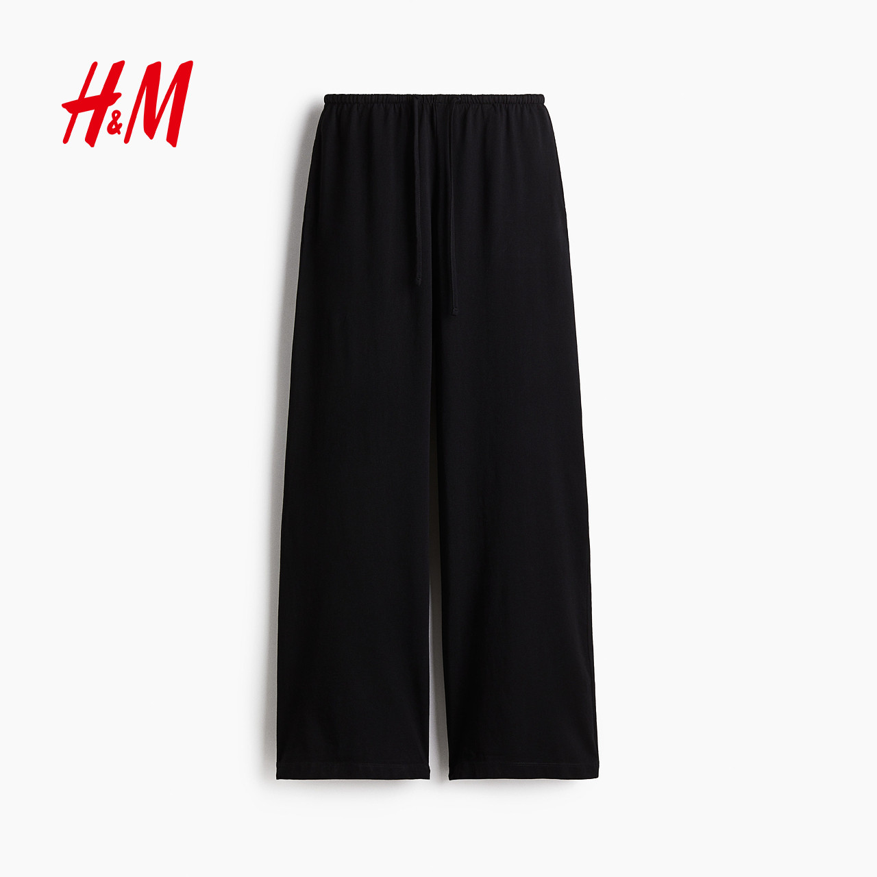 HM女装休闲裤2025冬季新款棉质直筒宽松休闲抽绳设计长裤1270859