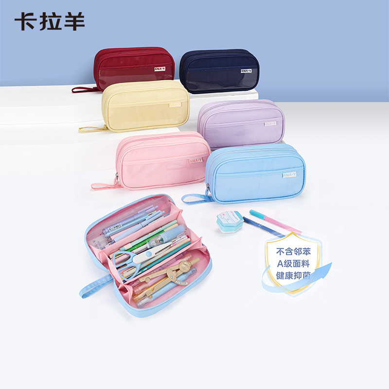 卡拉羊笔袋礼盒款简约高颜值ins风女生笔袋糖果色笔袋多隔层大容量男孩笔袋超轻文具盒防泼水抑菌铅笔盒