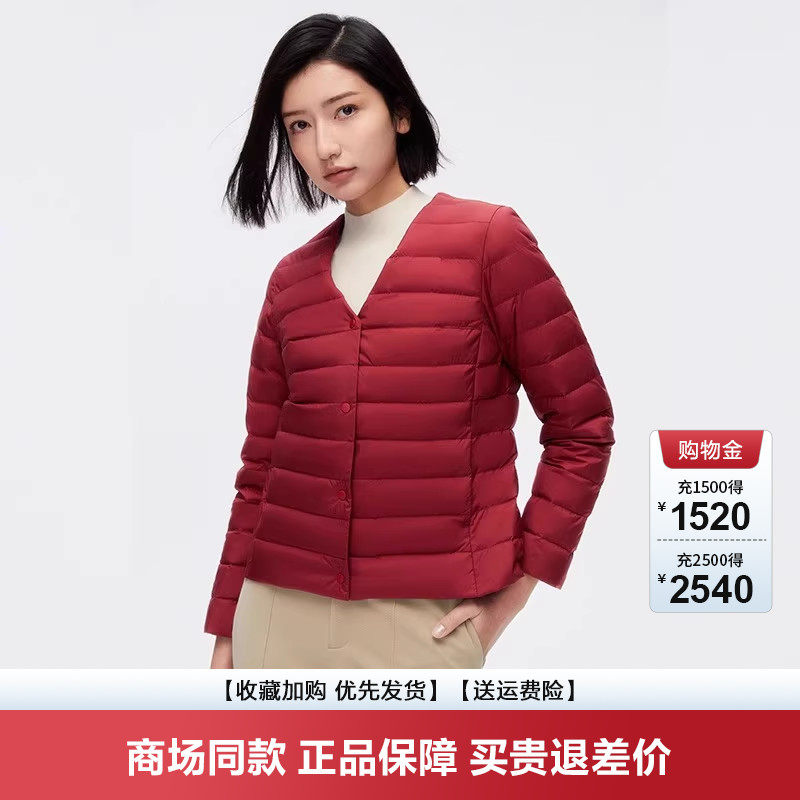 鸭鸭轻薄羽绒服女2025年秋冬反季短款立领修身舒适上衣内胆外套J
