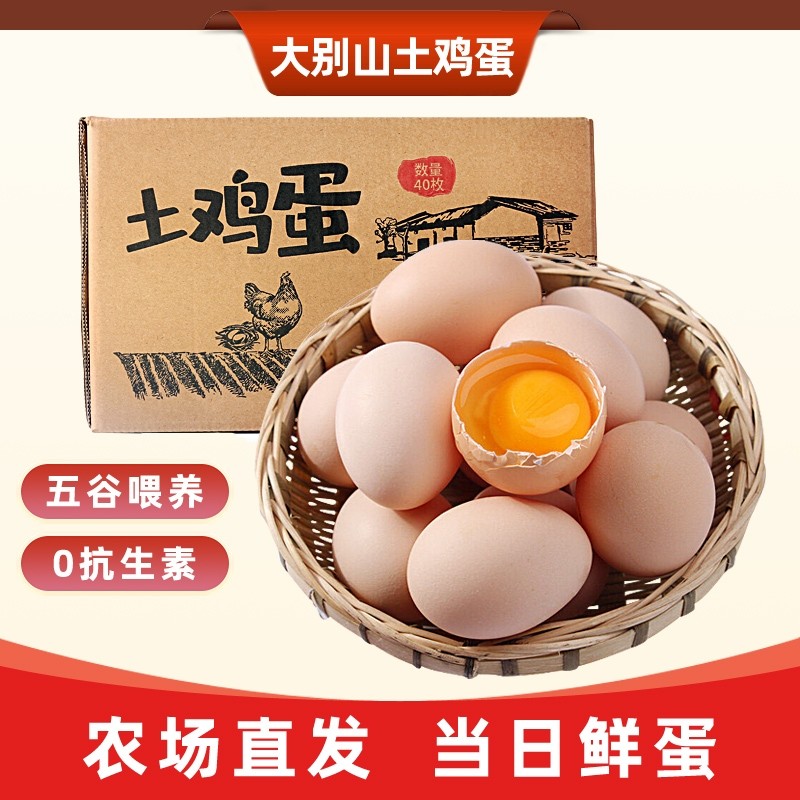 正宗农家土鸡蛋40枚湖北大别山散养谷物蛋孕妇精选鲜鸡蛋配送自提