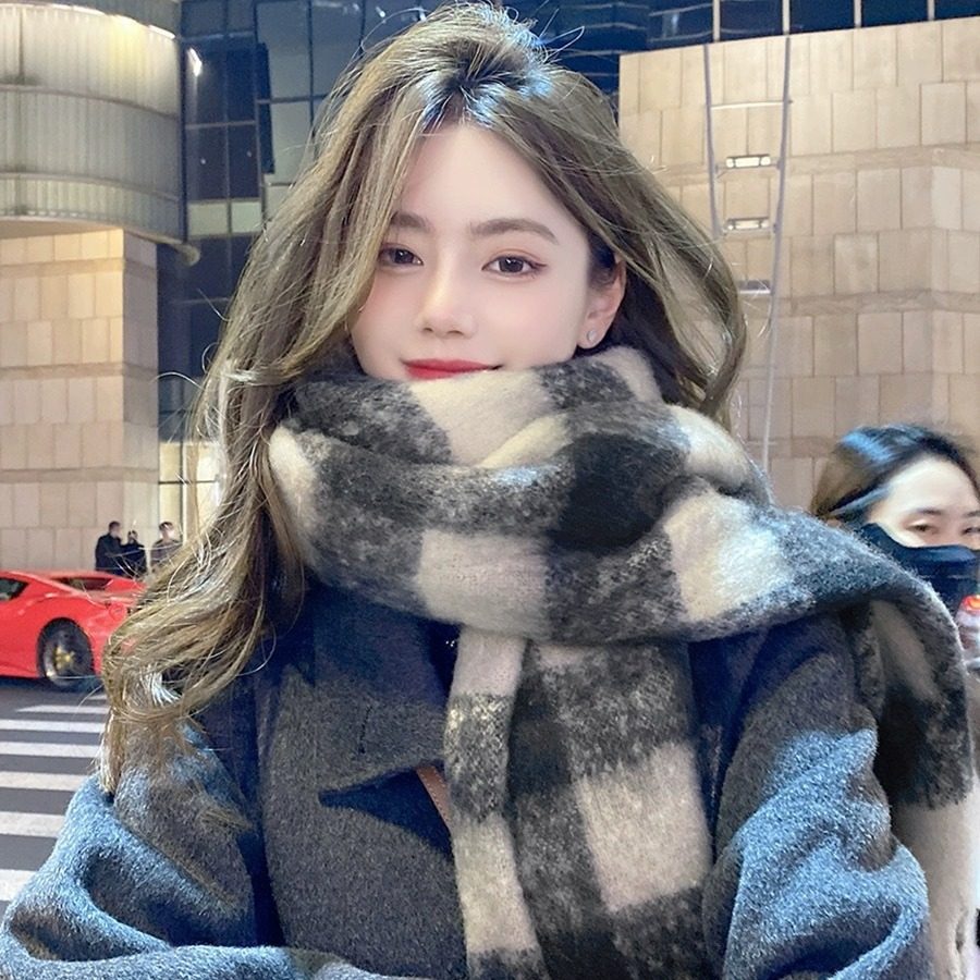 新款ins井字格子围巾男女冬韩版百搭保暖学生韩系氛围感港风围脖