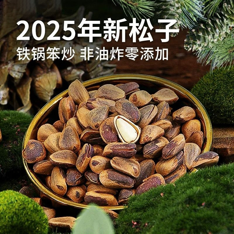 2025东北纯野生开口松子500g新货特大手剥松籽散装大颗粒手拨坚果