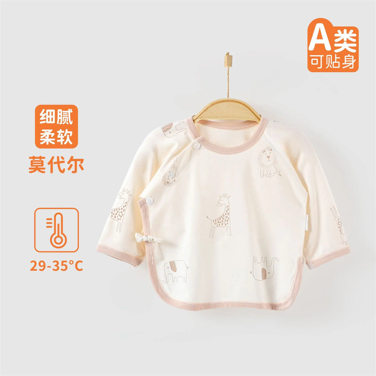 婧麒婴儿半背衣夏季莫代尔新生儿薄款初生宝宝和尚服满月服上衣