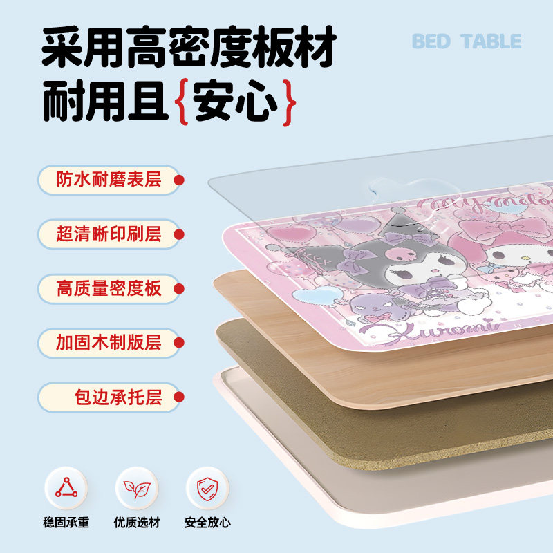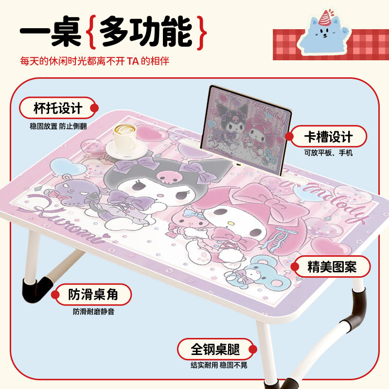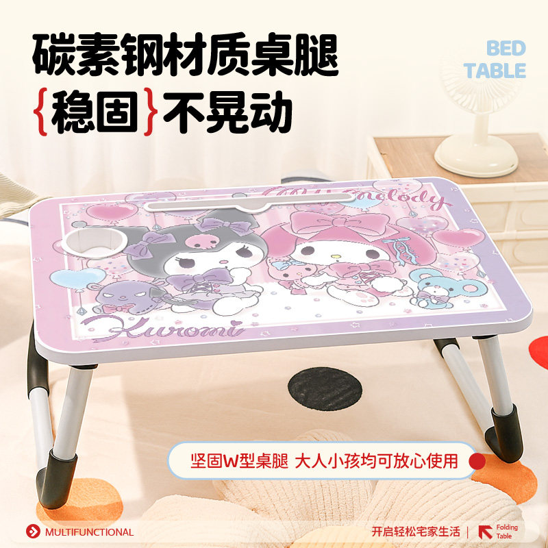 三丽鸥可折叠床上小桌子便携卡通库洛米可折叠桌学生写字桌宿舍上铺懒人餐桌小桌子板野餐桌化妆桌迷你电脑桌