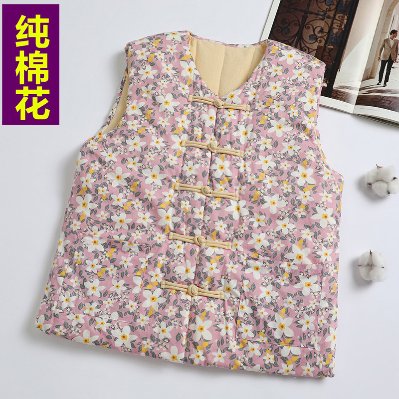 中老年女冬季纯棉花马甲中国风妈妈装加厚保暖内外穿背心复古马夹