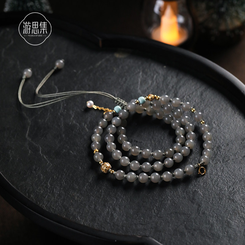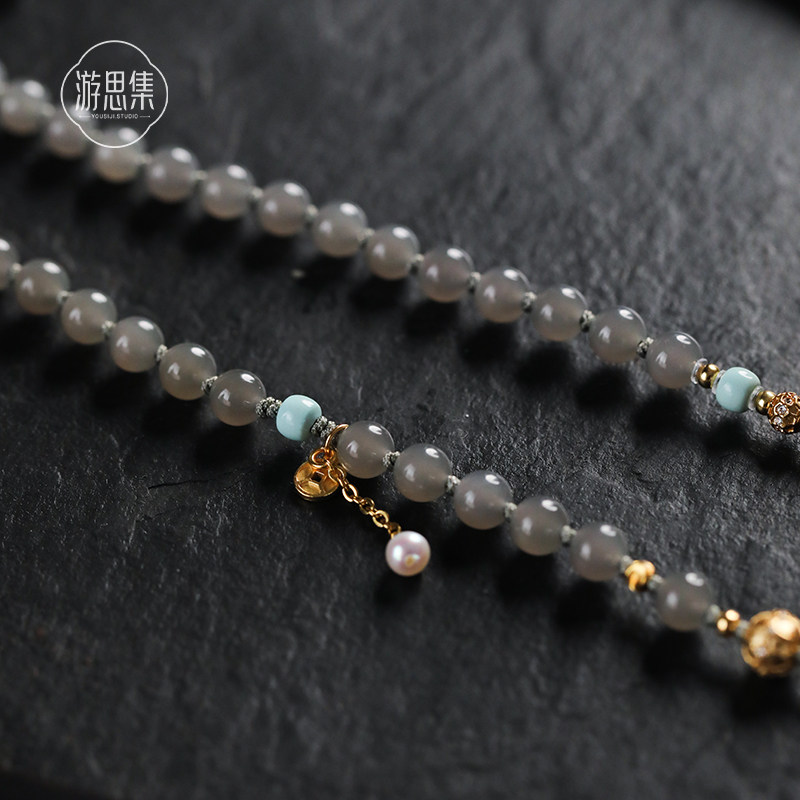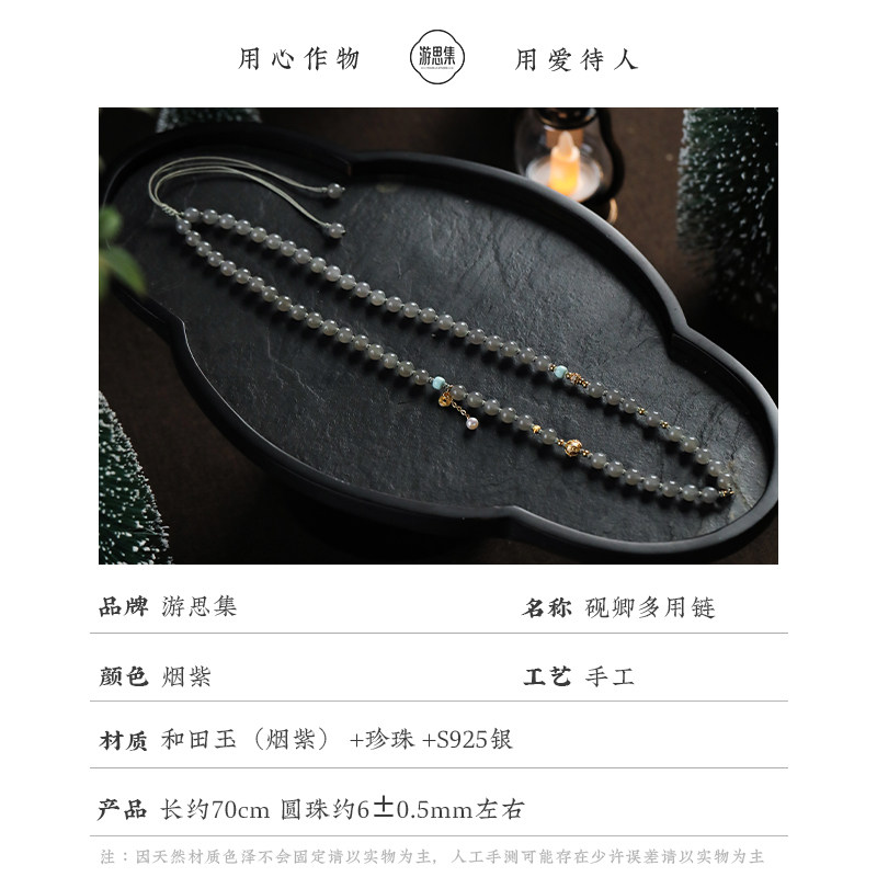 烟紫【砚卿多用链】天然和田玉串珠毛衣项链手链S925银珍珠送礼