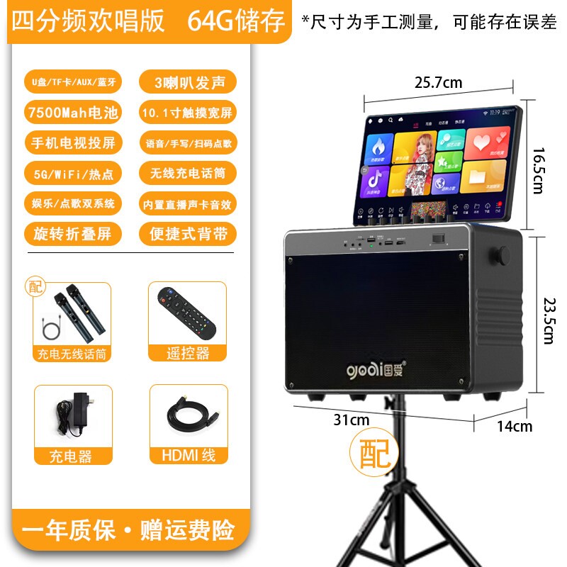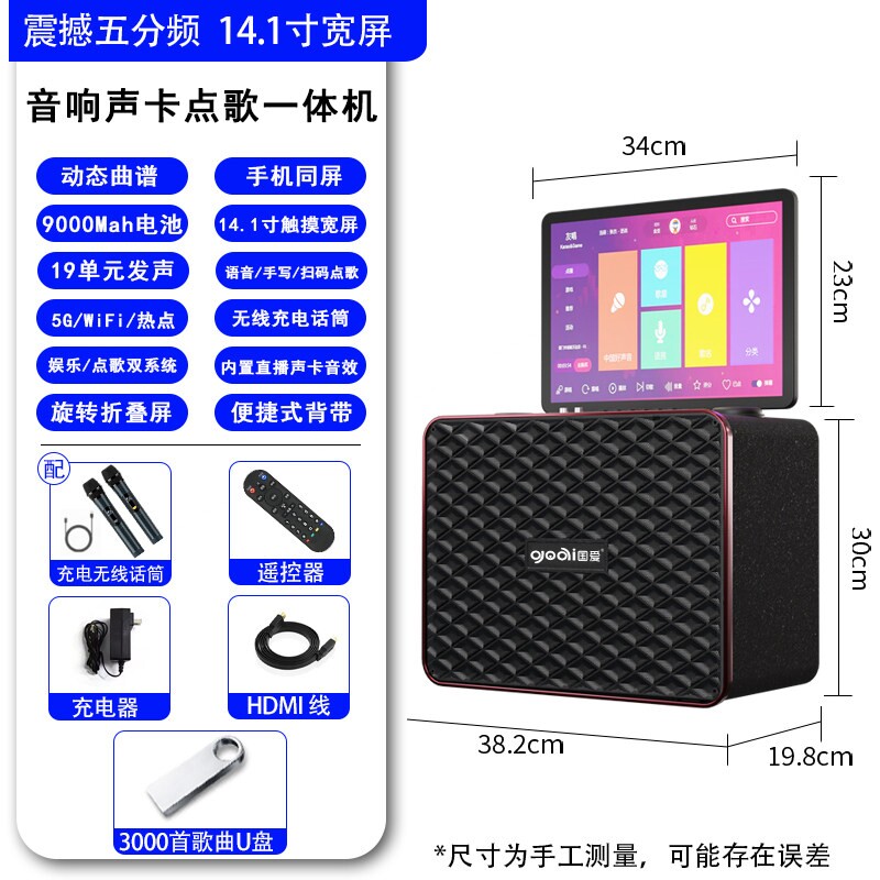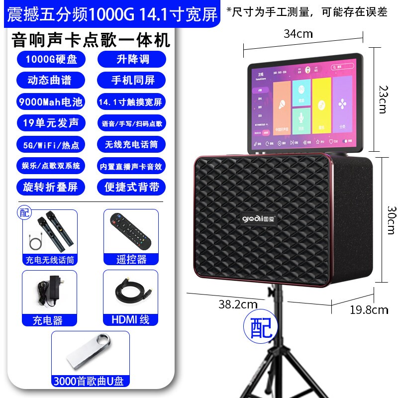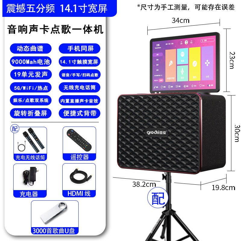 国爱户外K歌音响广场舞音箱带显点歌一体机卡拉OK示屏家庭KTV套装