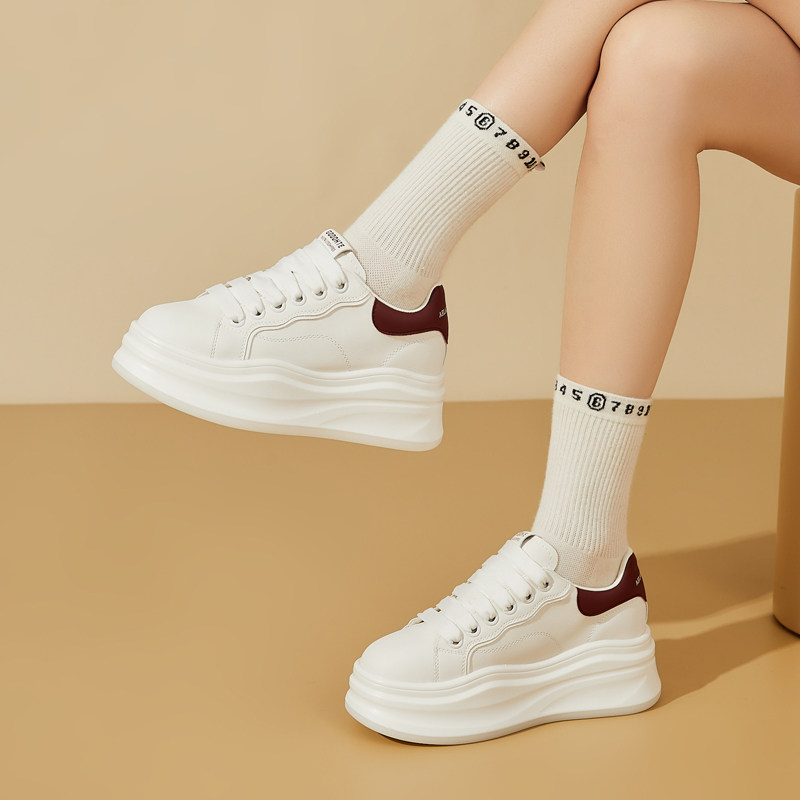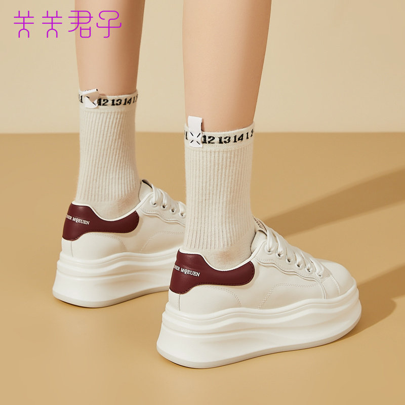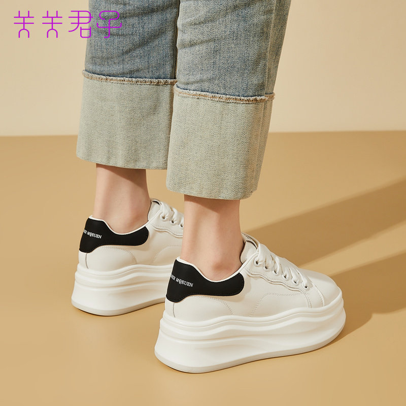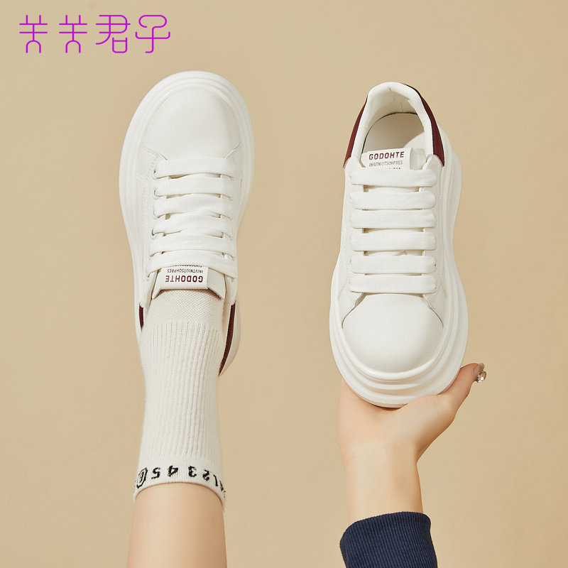 牛皮版~2025年秋冬新款真皮厚底内增高松糕休闲板鞋女百搭小白鞋