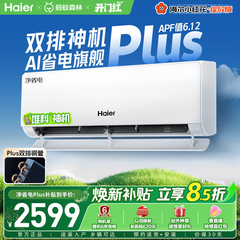 【堆料神机】海尔空调净省电Plus小红花官方家用1.5匹新一级挂机