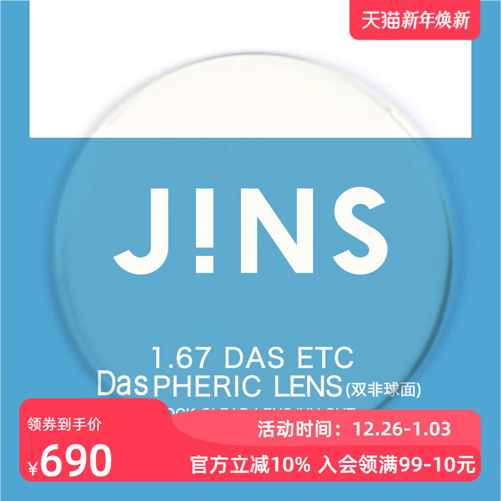 JINS睛姿近视眼镜升级 1.67轻晰真视双非防蓝光非球面镜片专用