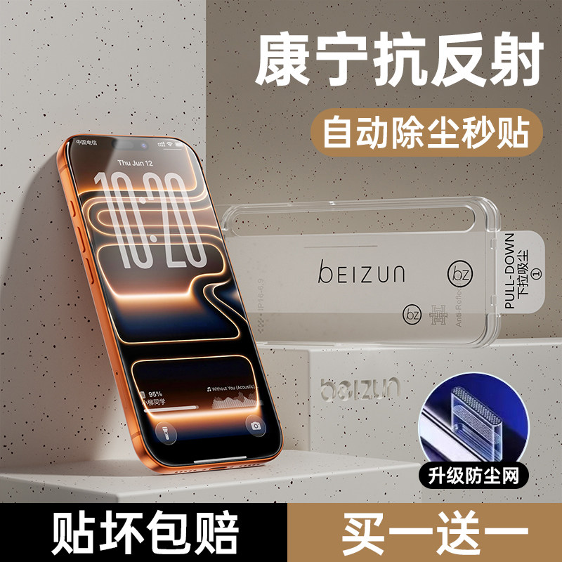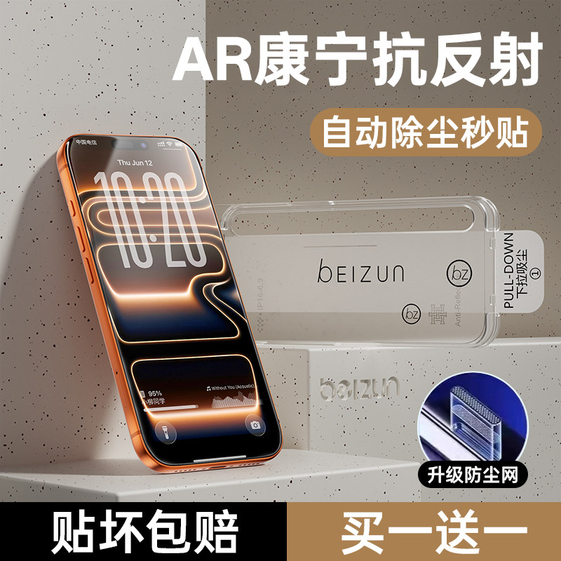 倍思无纹膜适用苹果iPhone17钢化膜AR抗反射16ProMax保护膜15Pro无尘仓14手机贴膜13全屏覆盖12抗摔11防爆Air