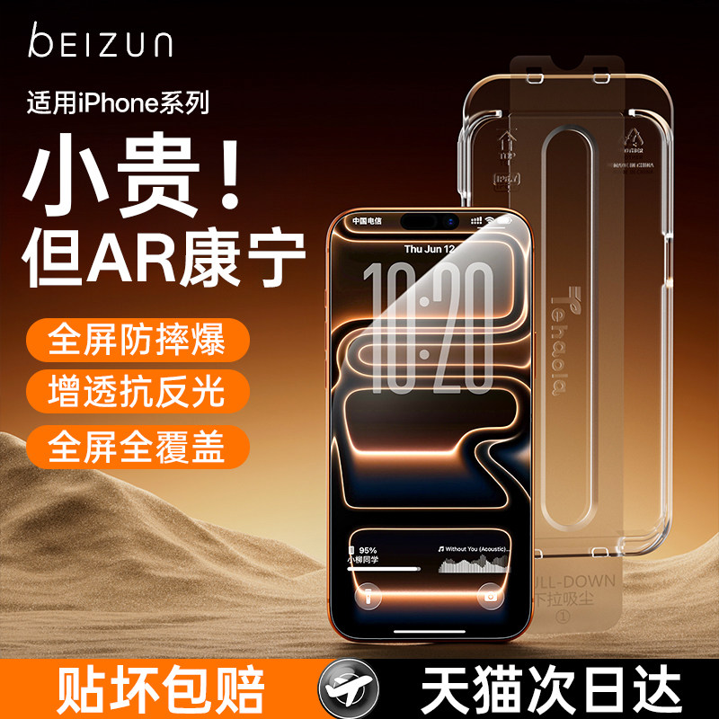 [进口AR康宁防摔膜]贝尊适用苹果17promax无尘仓iphone16Pro钢化膜15Plus手机贴膜14全屏覆盖13保护12高清Air