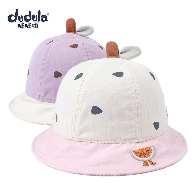 嘟嘟啦婴儿帽子女宝宝盆帽春秋纯棉遮阳帽儿童防晒渔夫帽南瓜帽子