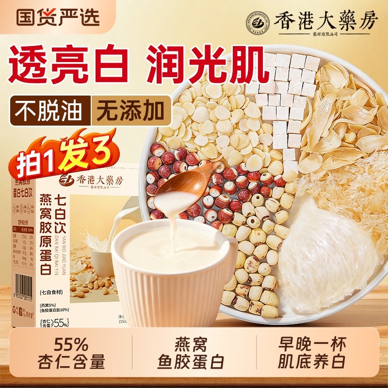 杏仁七白饮官方旗舰店正品燕窝胶原蛋白冲泡营养粉早餐代餐非美白