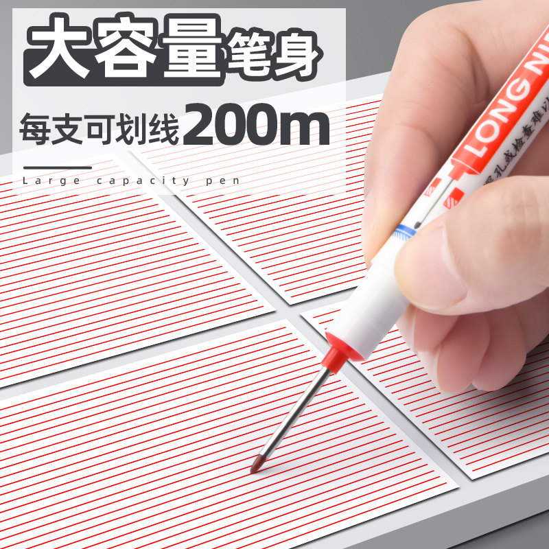 长头记号笔防水防油不掉色油性笔瓷砖工业工地专用木工笔黑色红色加长画线计号笔深色板材打孔笔划线笔描线笔