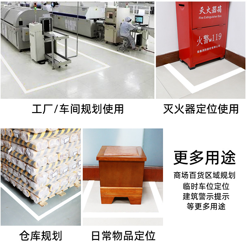 白色定位胶带不留胶桌面5S标识贴纸安全警戒隔离带车位车间厂房区域划分消防地标线加厚耐磨PVC警示地板胶布