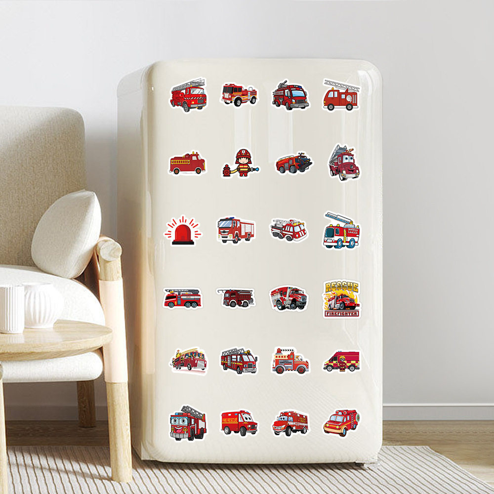 100张卡通消防车贴纸卡通儿童早教涂鸦装饰手机壳电脑防水贴画diy