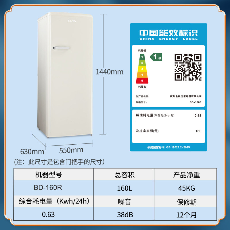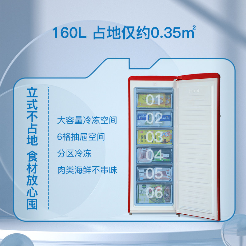 优诺 160升立式冷柜冰柜抽屉式全冷冻小冰箱母乳母婴冷冻储奶冰箱