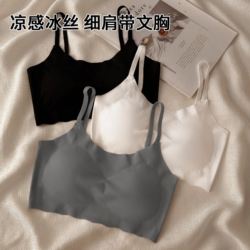 少女内衣发育期初中学生女孩无痕冰丝文胸吊带无钢圈大胸显小背心