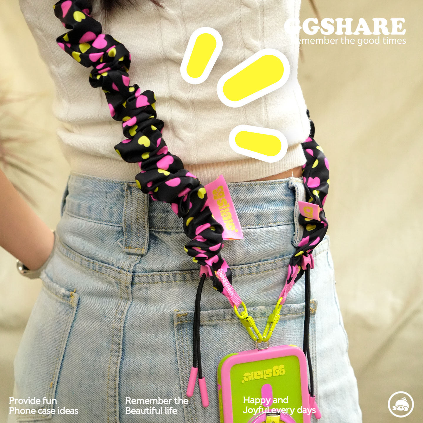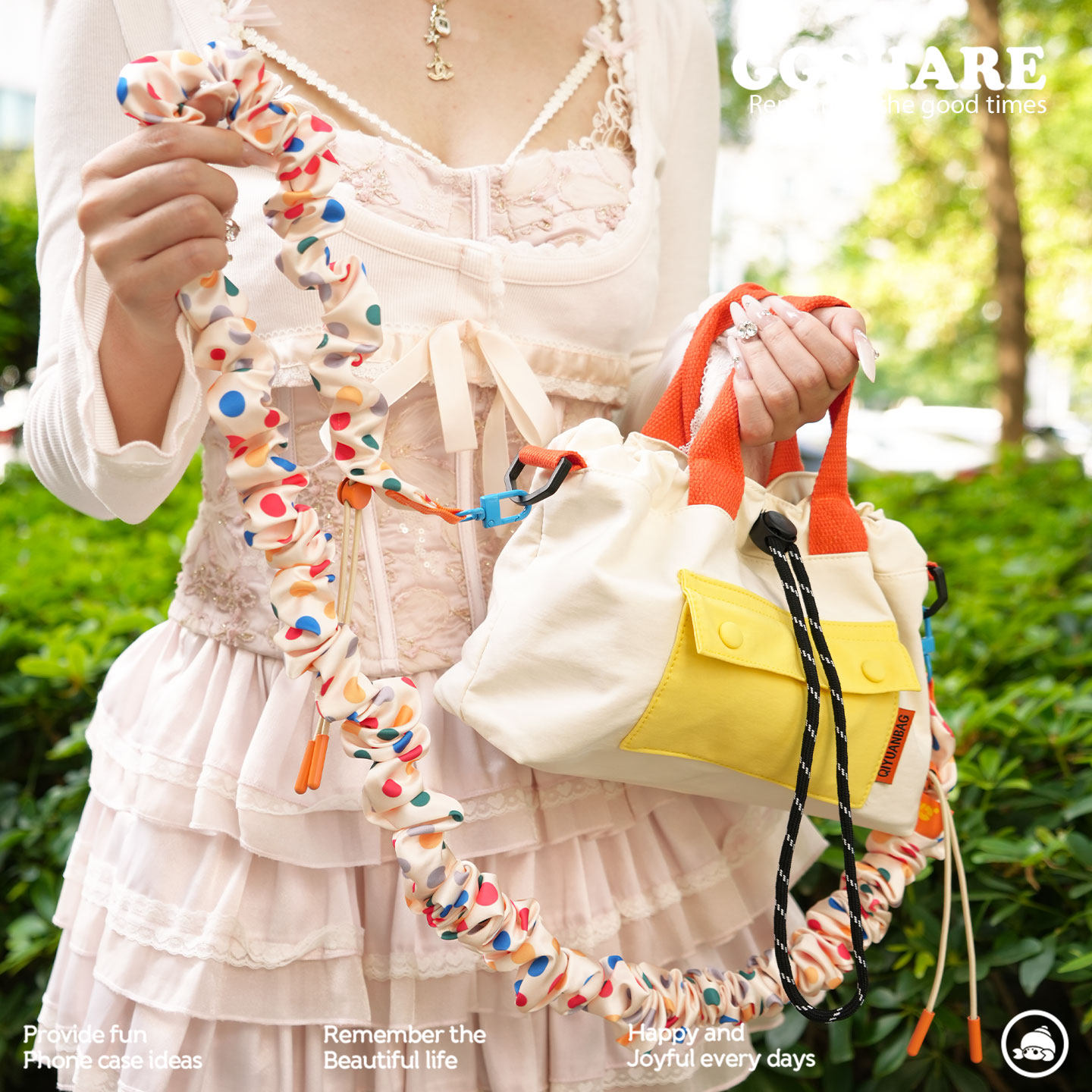 寄居蟹原创设计褶皱长绳手机挂绳斜跨可背防丢手机绳女精致高级感