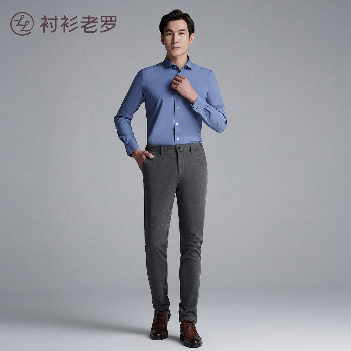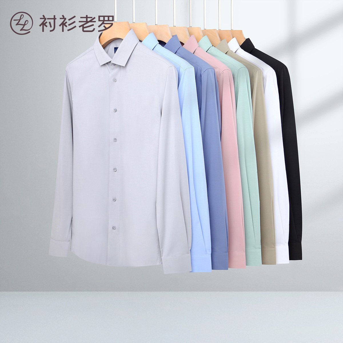 衬衫老罗[凌志T9]男士衬衫竹纤维商务休闲抗皱长袖衬衣219619
