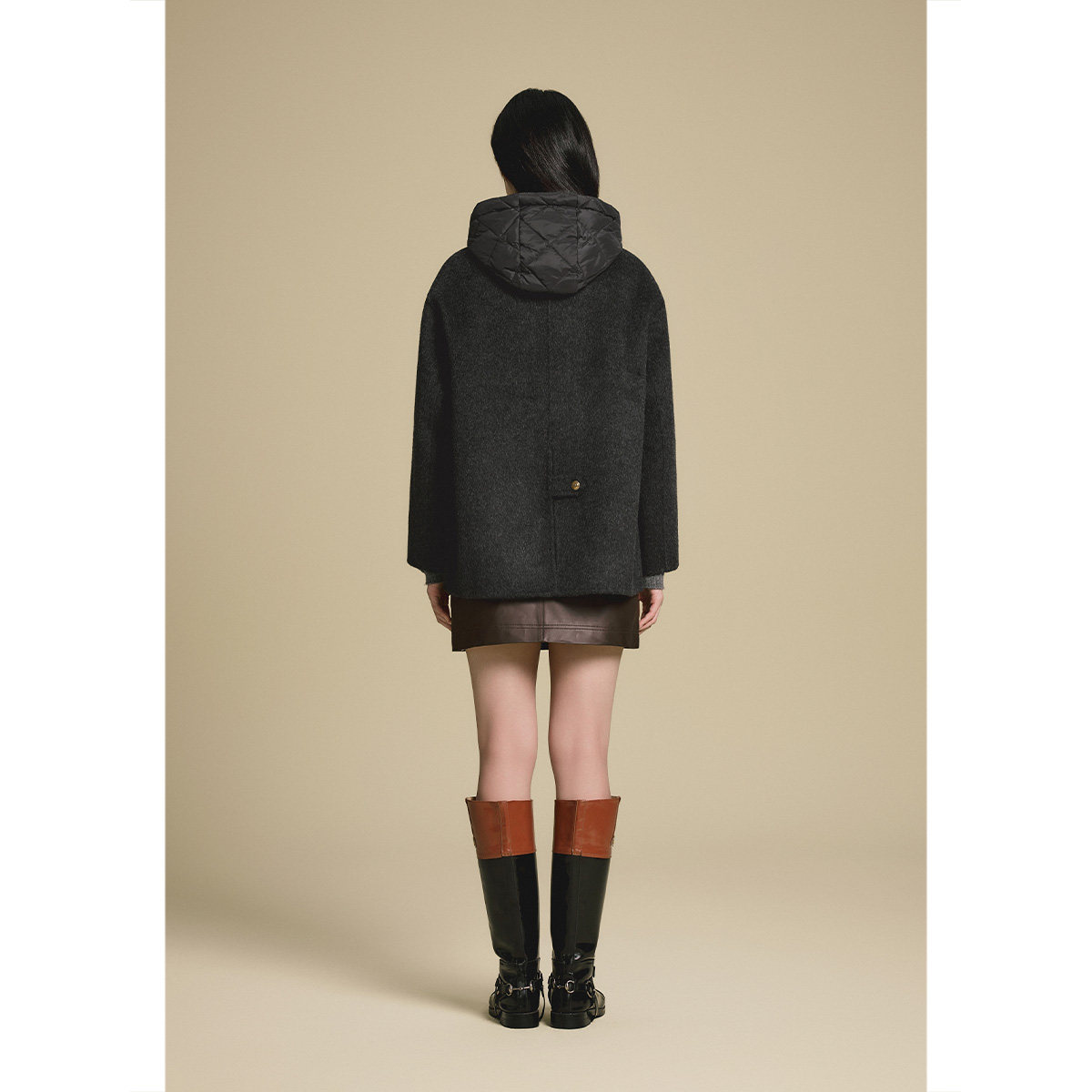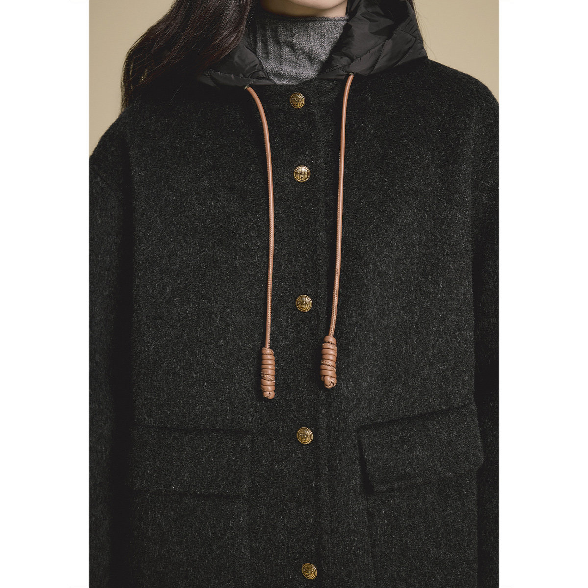诗篇专选可拆卸羽绒帽廓形大衣羊毛呢外套2025冬季新款
