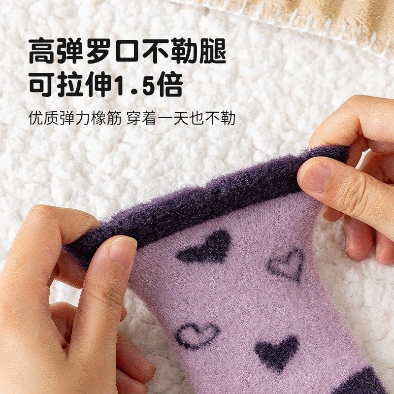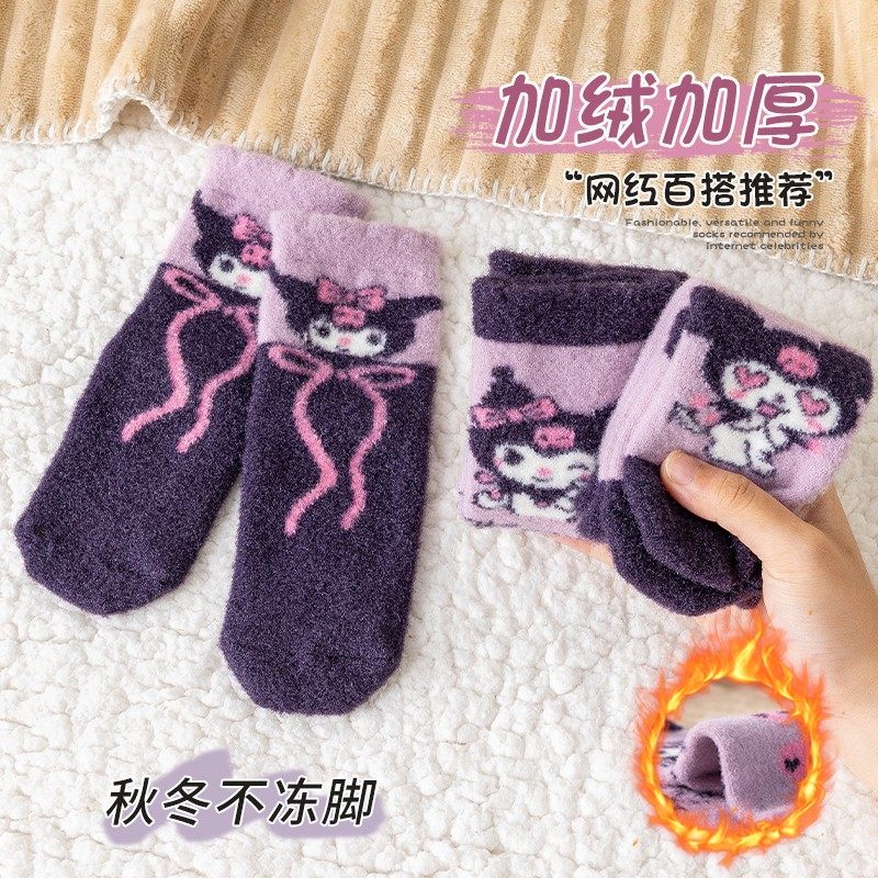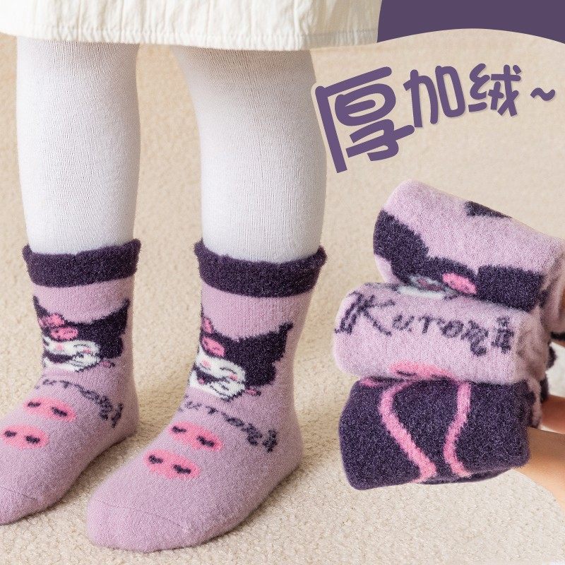 库洛米女童袜子秋冬季可爱女孩加厚加绒中筒袜儿童冬天保暖毛圈袜