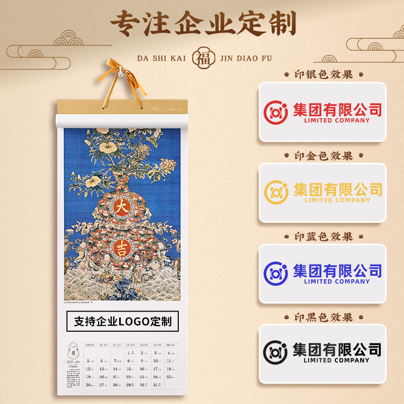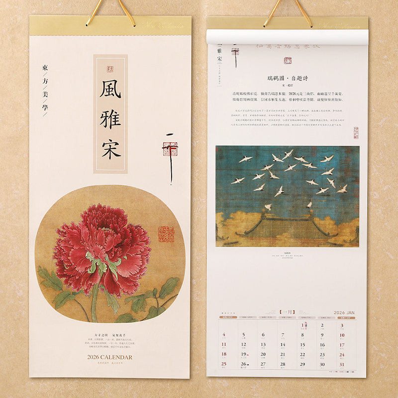 挂历2026年新款装饰家用挂墙日历精美加厚筒装礼盒月份牌中国风简约艺术纸单张挂式月历企业广告订做logo年历