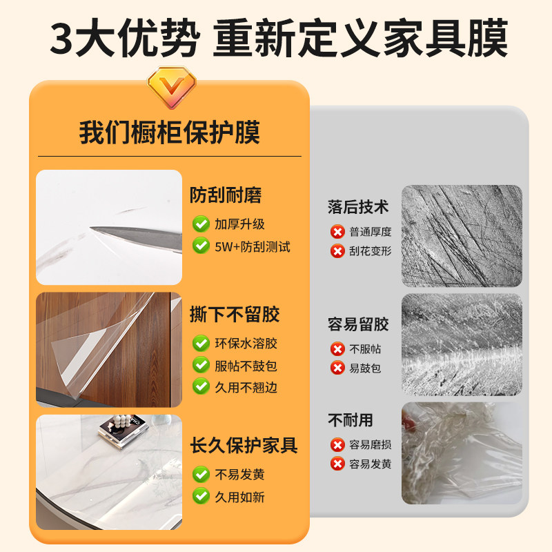 橱柜防水膜自粘厨房防油贴纸浴室柜子柜门家具贴膜木门透明保护膜