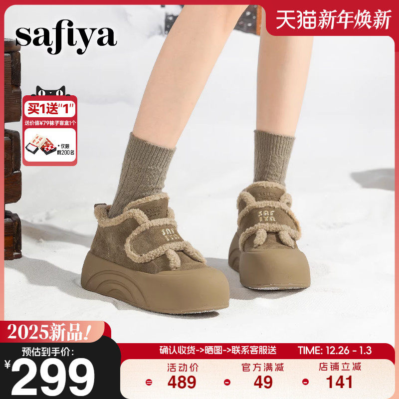 Safiya/索菲娅魔术贴高帮外穿加绒松糕时尚丑萌厚底面包鞋棉鞋女