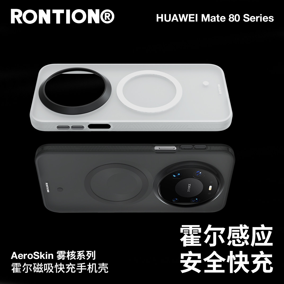 【7仓次日达】RONTION雾核轻砂壳适用于华为Mate80手机壳HUAWEIMate80ProMax全包防摔霍尔磁吸磨砂半透抗指纹