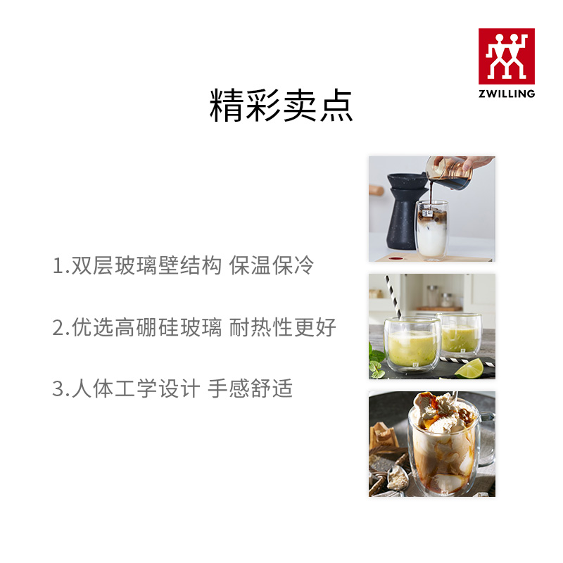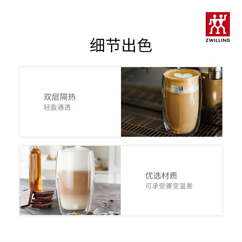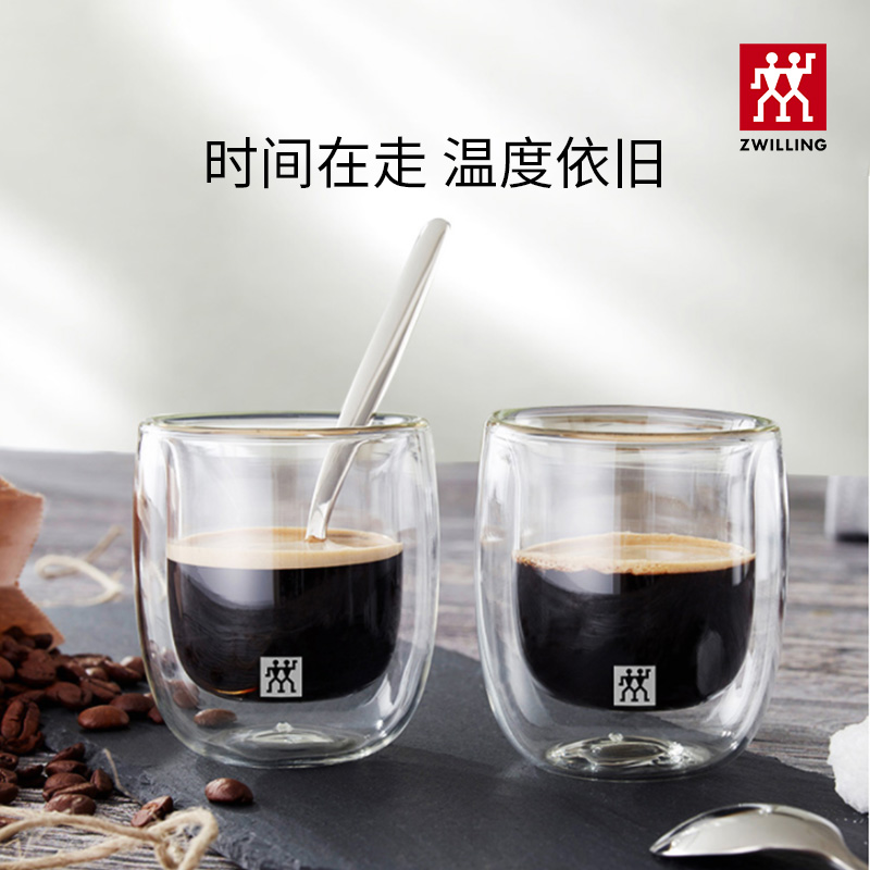 德国双立人双层玻璃杯水杯家咖啡杯子高档精致拿铁杯牛奶杯耐高温