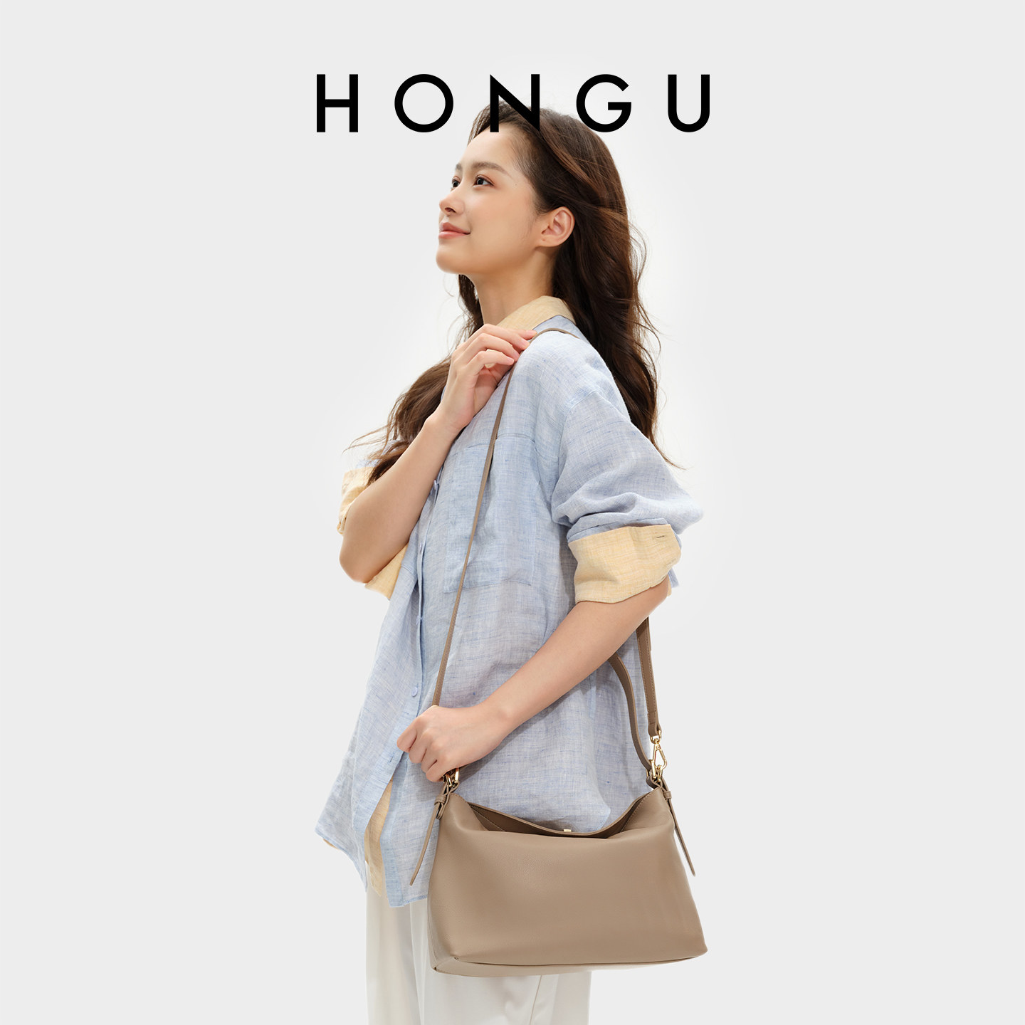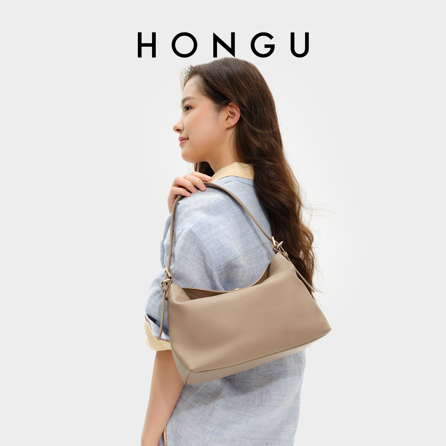红谷包包女2026新款真皮单肩手提包松弛慵懒腋下包休闲斜挎女士包