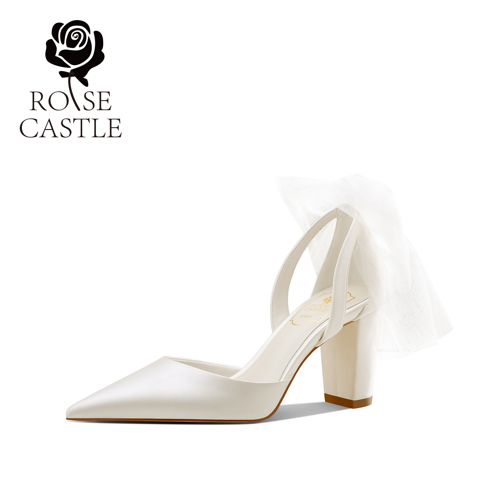 rose castle月影浮光 法式婚鞋女粗跟不累脚新娘高跟鞋包头凉鞋
