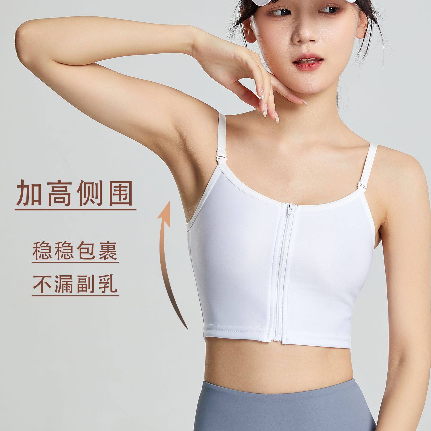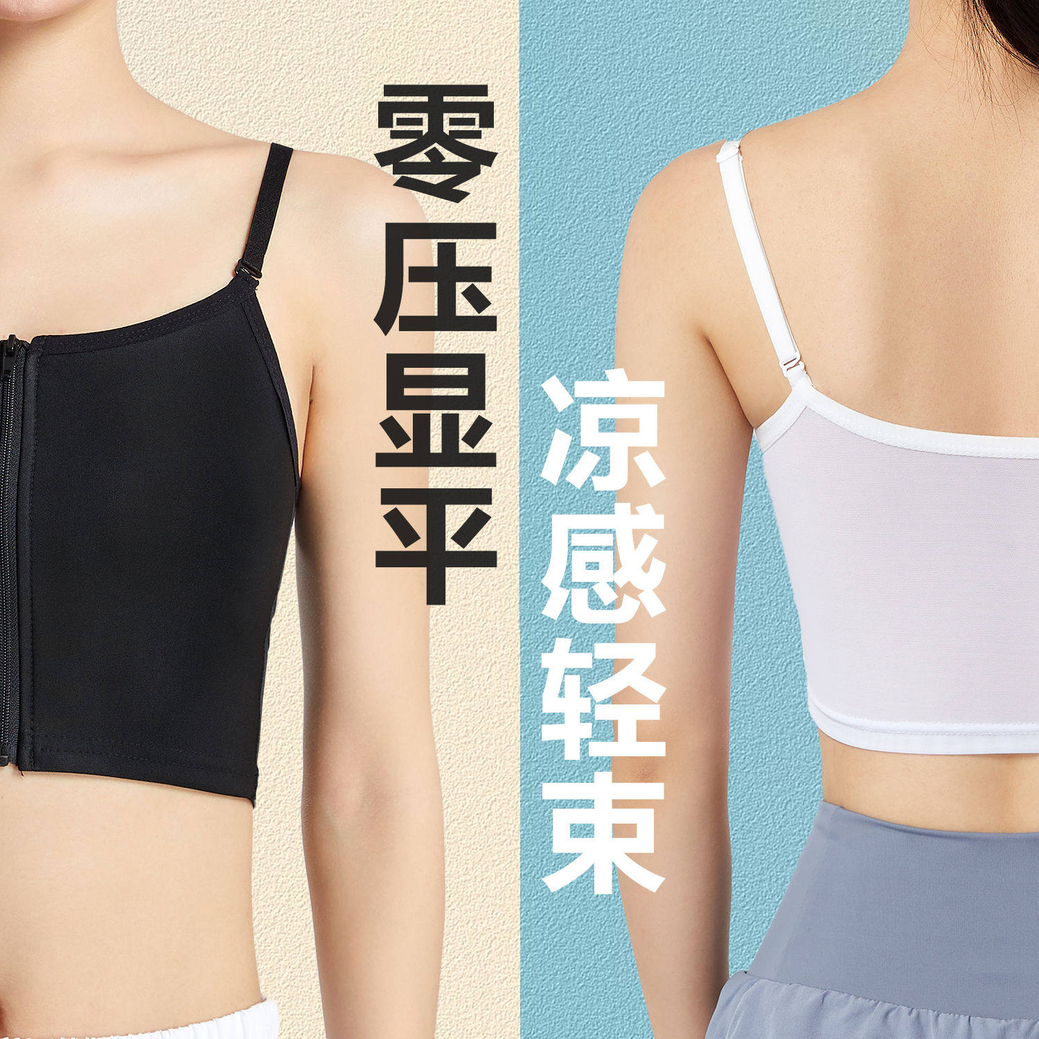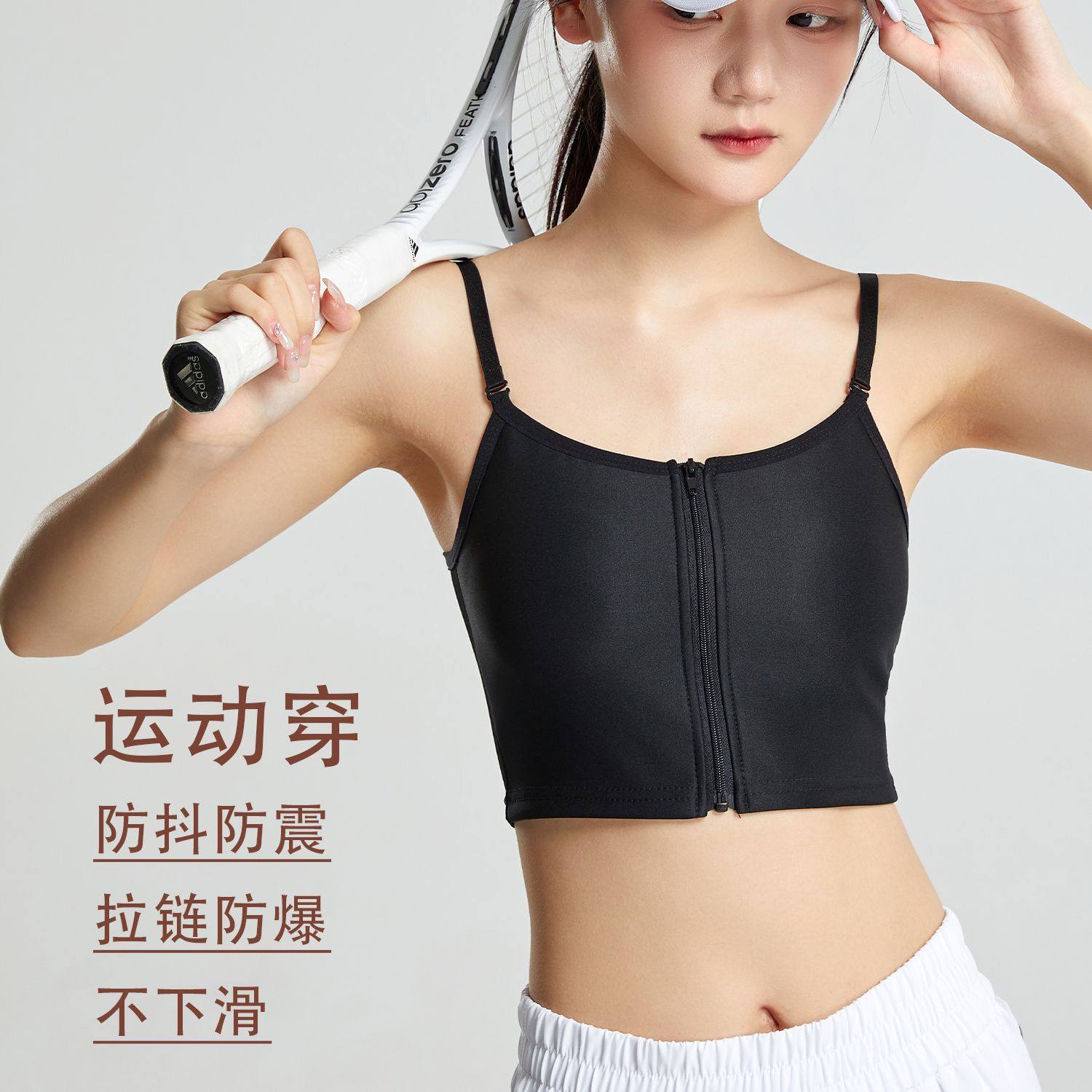 薄款吊带束胸内衣大胸显小超平拉链裹胸防震防下滑学生运动背心女