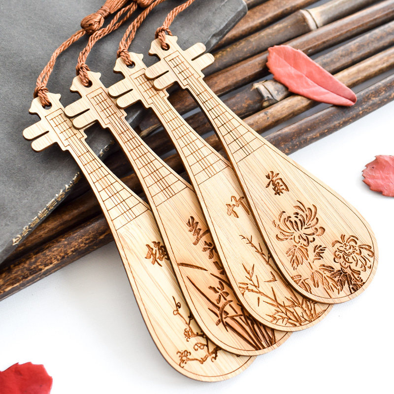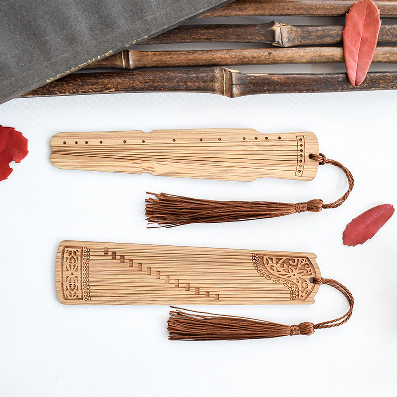 古典中国风竹制木制古筝古琴琵琶学生用创意流苏书签复古风小礼物