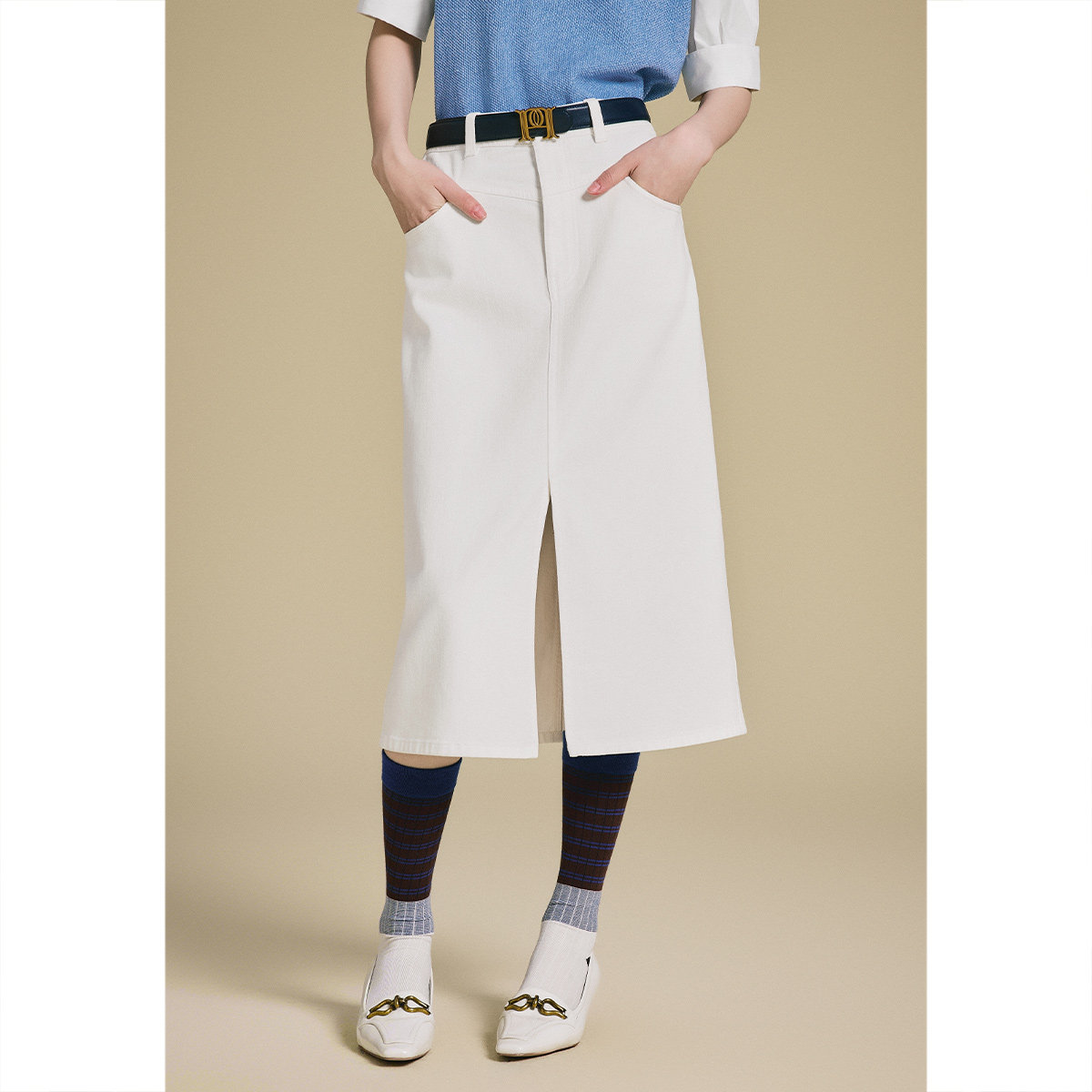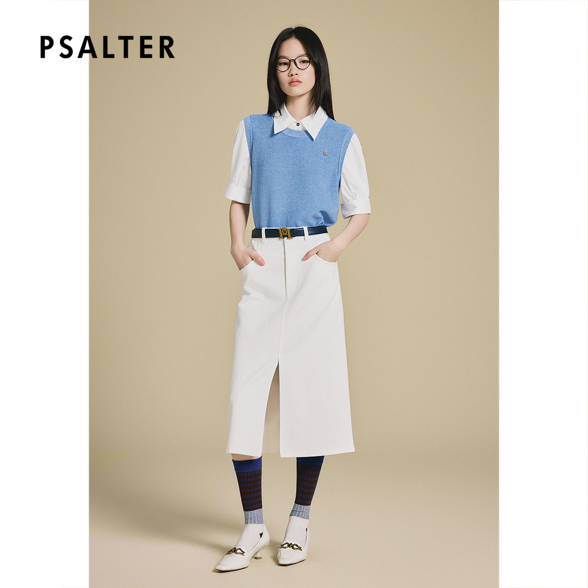 PSALTER诗篇通勤白色前开叉中长直筒裙半身裙2025夏季新款
