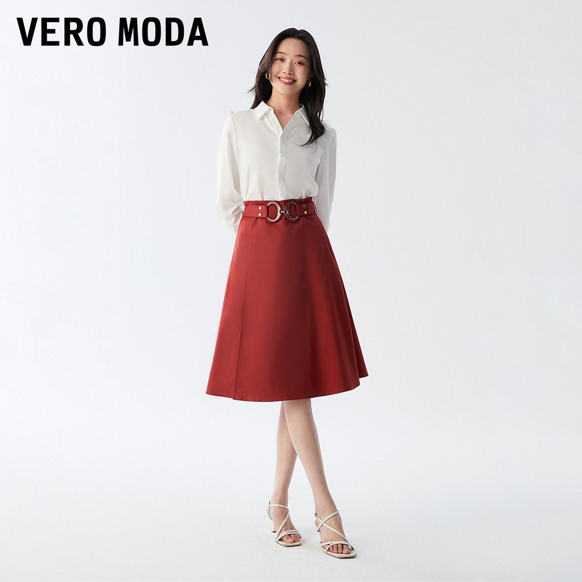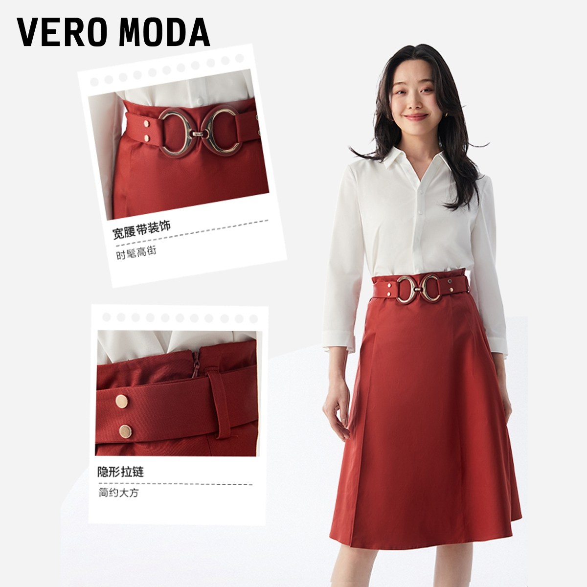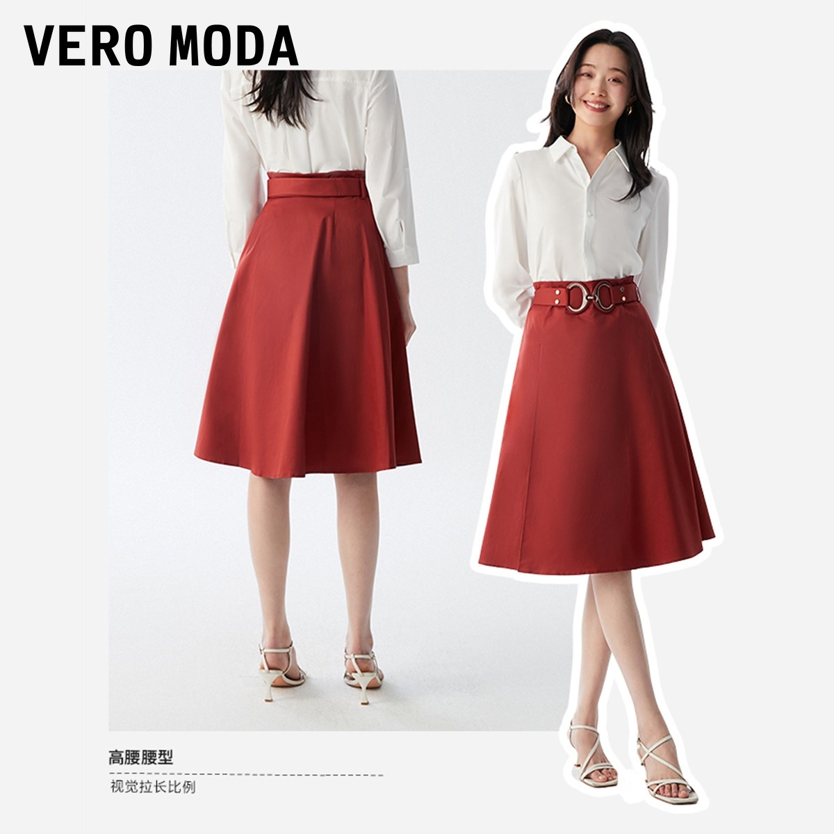 Vero Moda奥莱半身裙夏季清仓优雅气质通勤高腰A字中裙宽腰带装饰