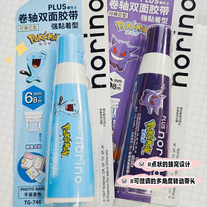 日本PLUS普乐士点点胶宝可梦限定皮卡丘双面胶便携式可爱手账胶带