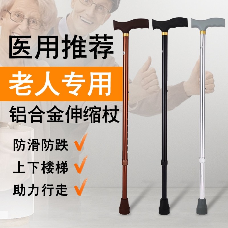老人伸缩拐杖加厚铝合金可调节手杖稳固防滑防摔散步行走登山拐杖