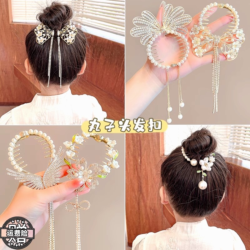 儿童丸子头发夹汉服女童头饰不伤发抓夹女孩发卡碎发神器古风新品