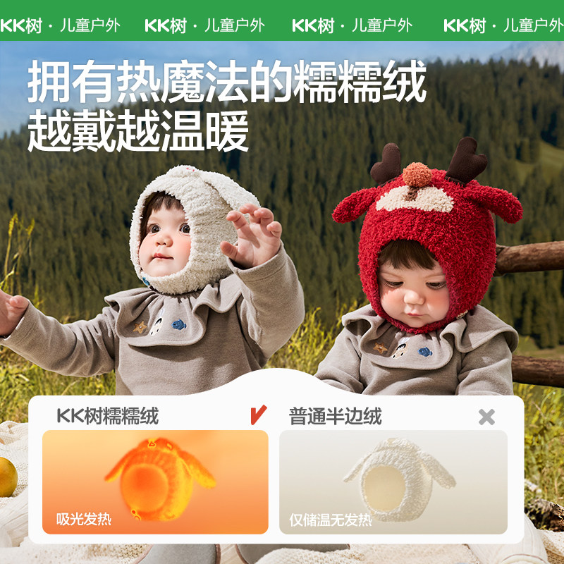 KK树宝宝帽子秋冬款男童女孩婴幼儿护耳帽A类动物小孩套头帽可爱