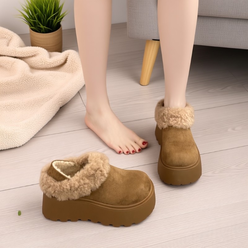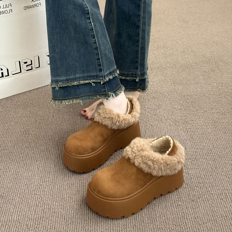 低帮厚底雪地靴女2025新款冬季懒人一脚蹬毛毛棉鞋加绒加厚女鞋子