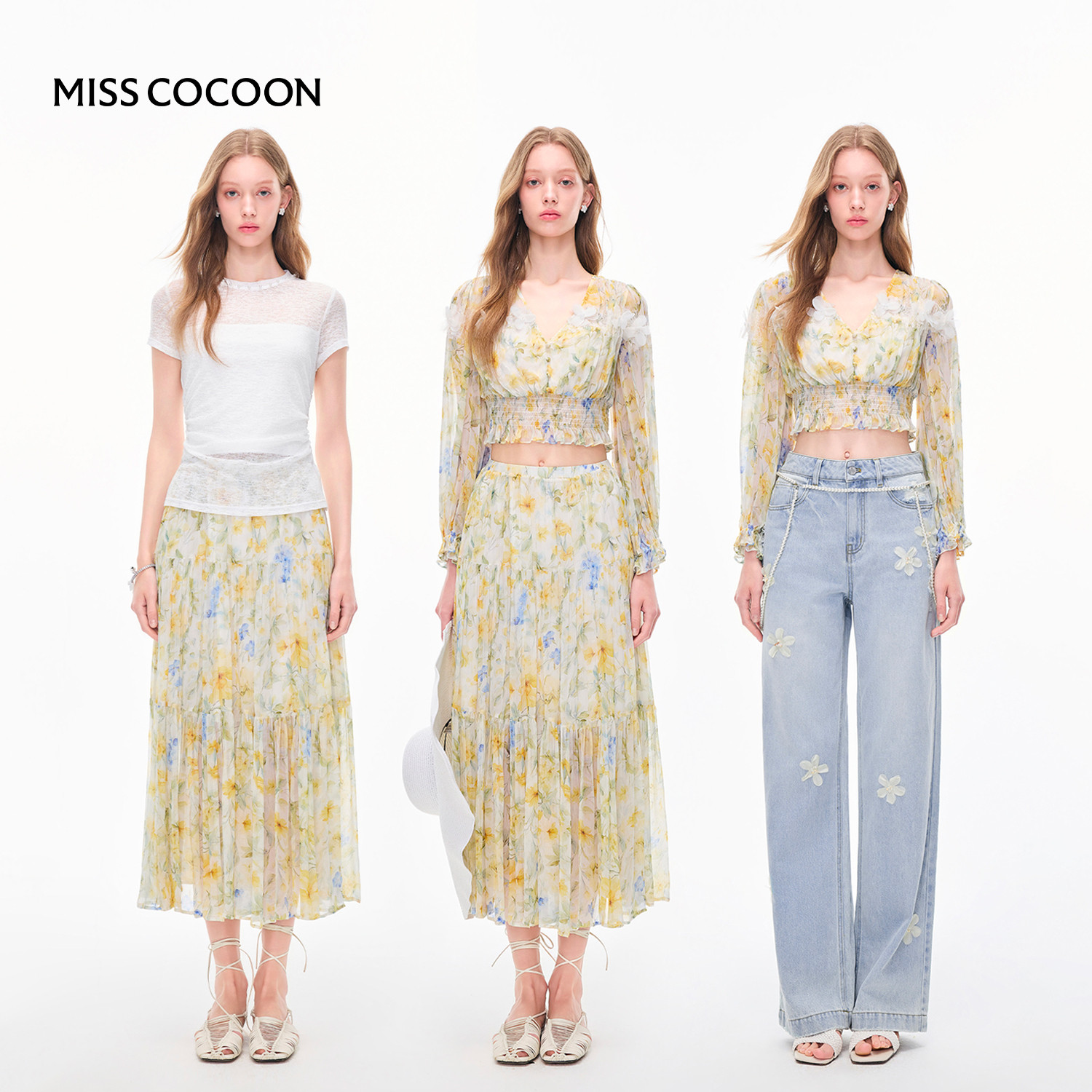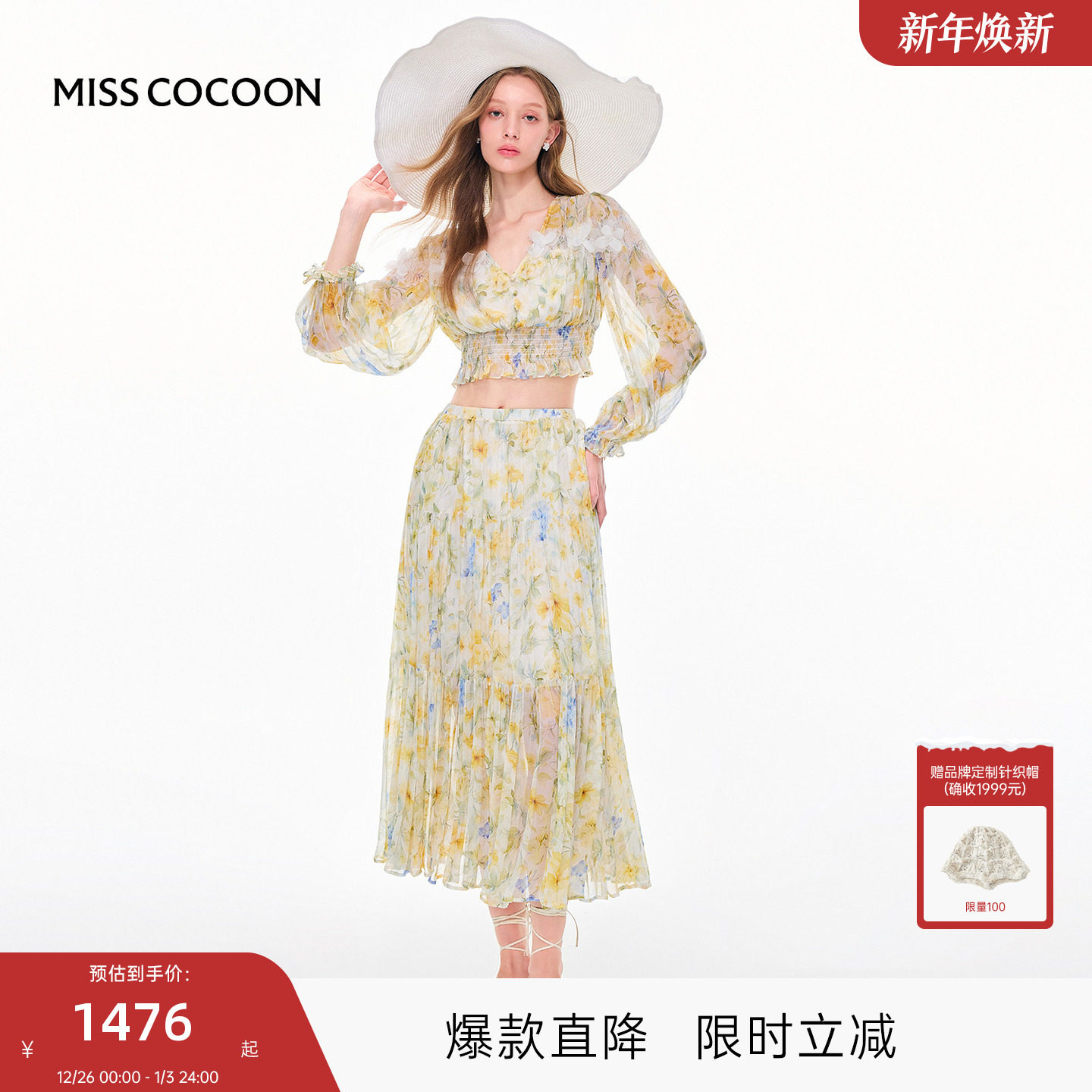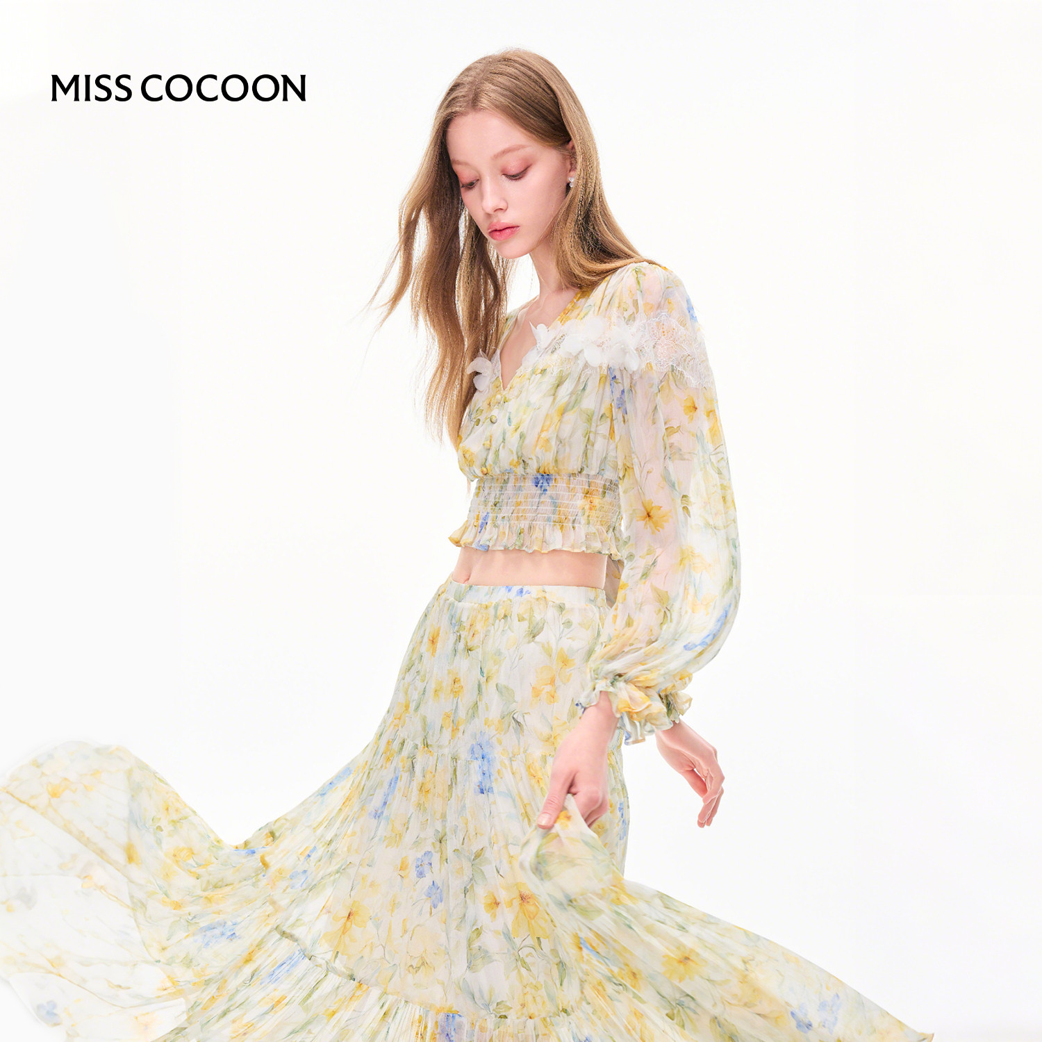 MISSCOCOON可可尼上衣两件套女2025秋季新款法式碎花半身裙套装