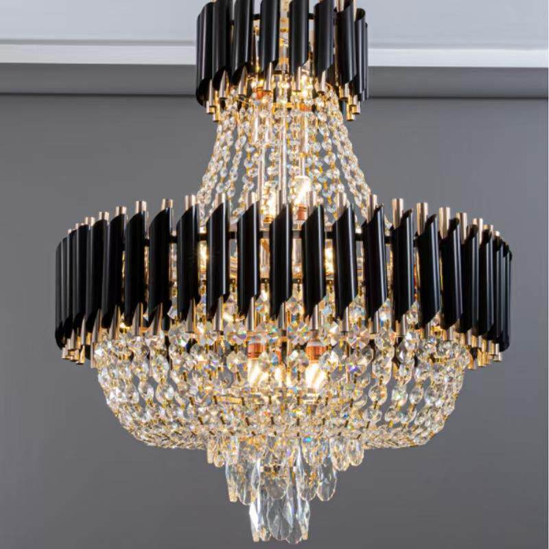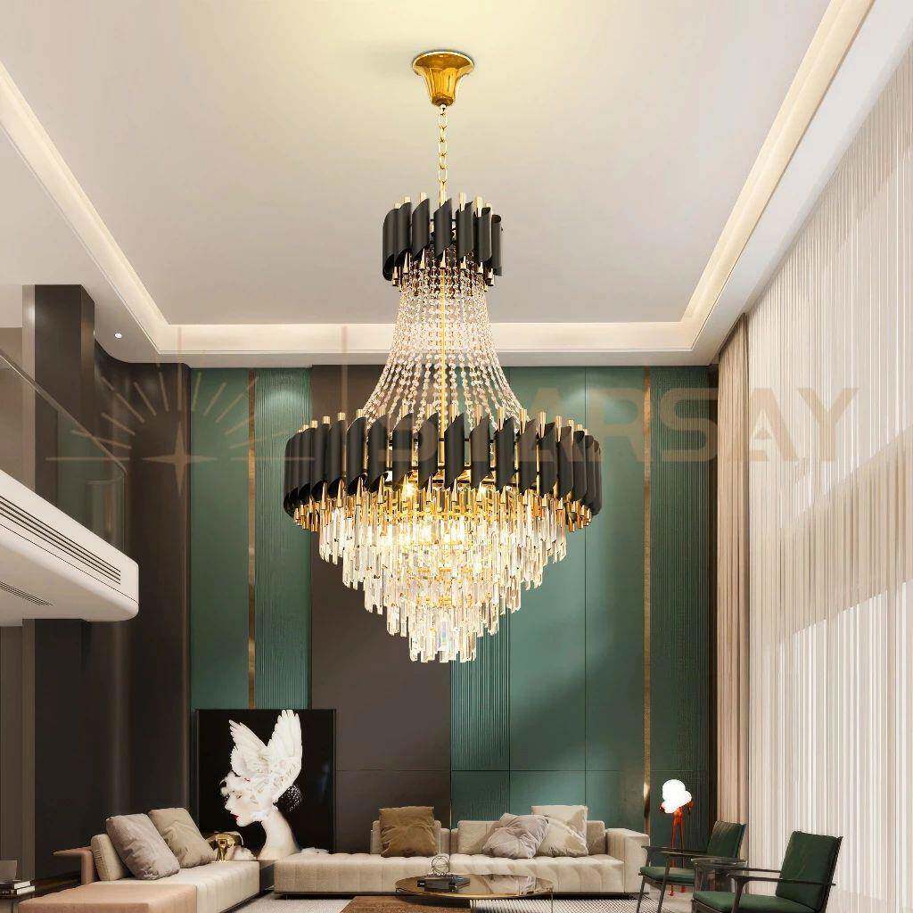 轻奢复式楼客厅水晶大吊灯别墅公寓中空楼中楼跃层楼梯长水晶吊灯
