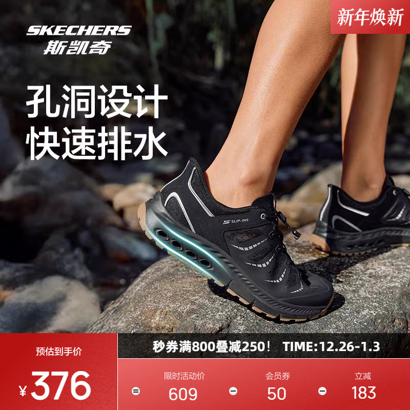 斯凯奇闪穿溯溪鞋2025新品女子户外运动徒步鞋透气网面凉鞋
