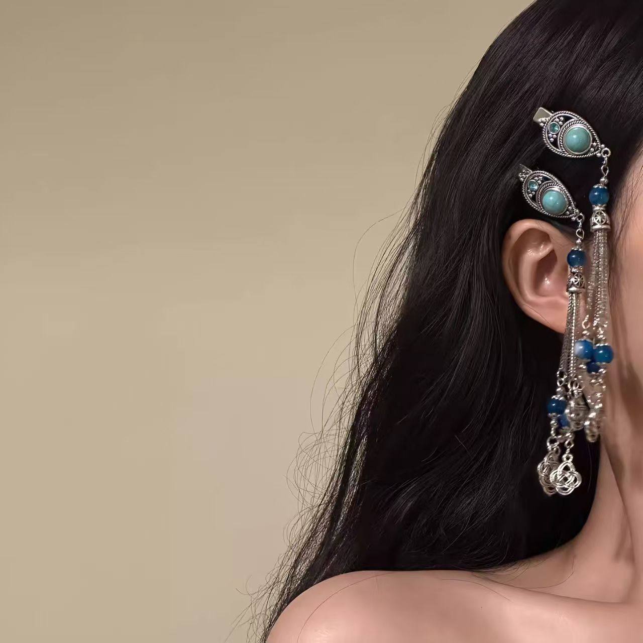 【铃韵轻摇】复古民族风铃铛流苏发夹女2025新款新中式古风侧边夹