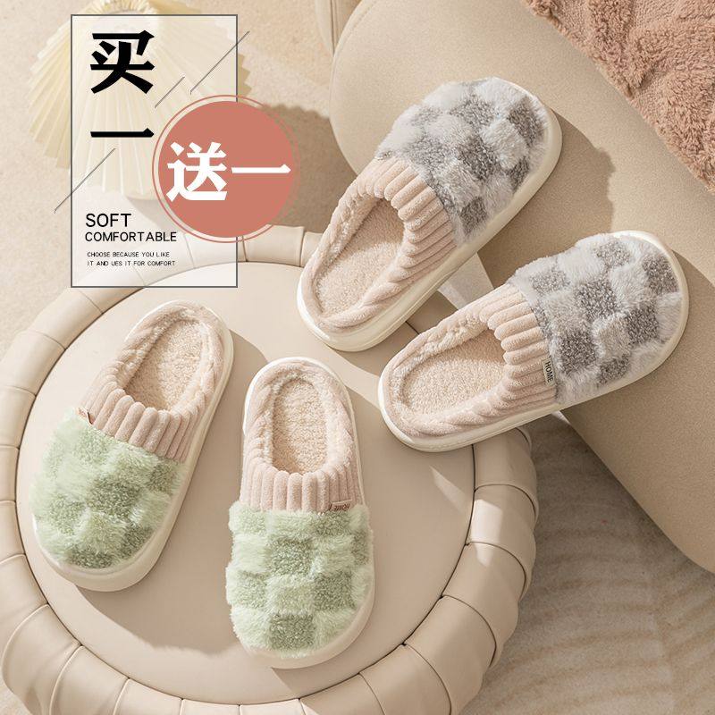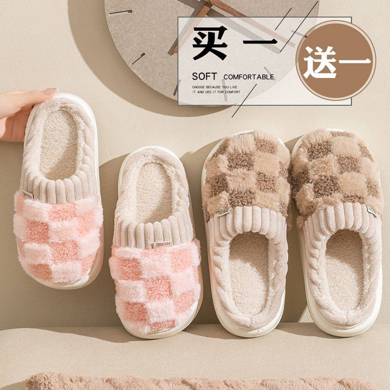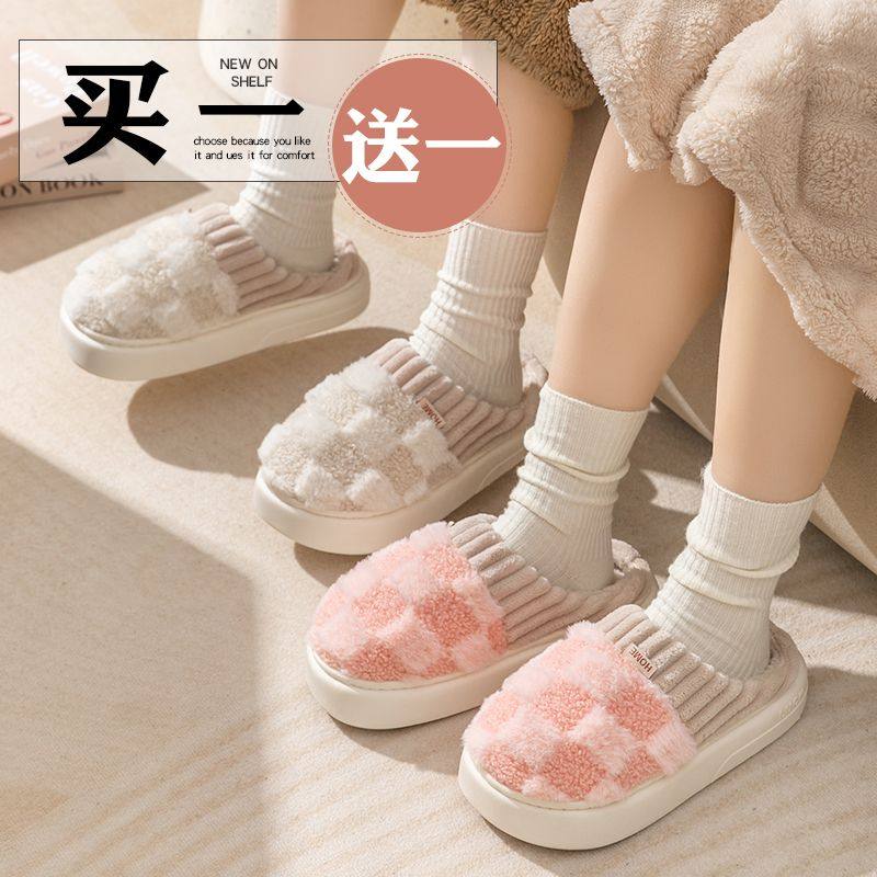 棉拖鞋女家居秋冬季居家室内保暖情侣毛绒家用防滑厚底男毛毛拖鞋