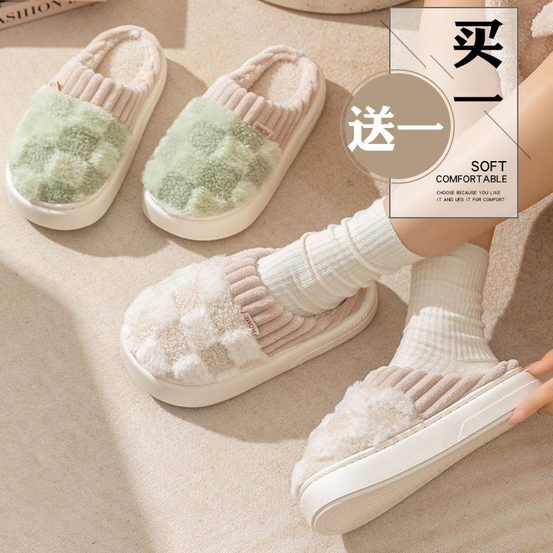 红豆踩屎感棉拖鞋女士秋冬季室内家居2025新款毛绒保暖情侣棉拖男